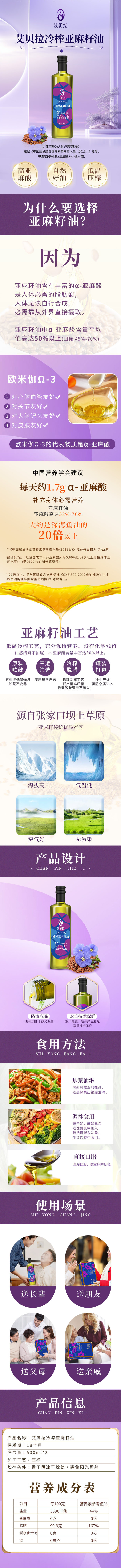 【艾贝拉】一级冷榨亚麻籽油礼盒500ml*2