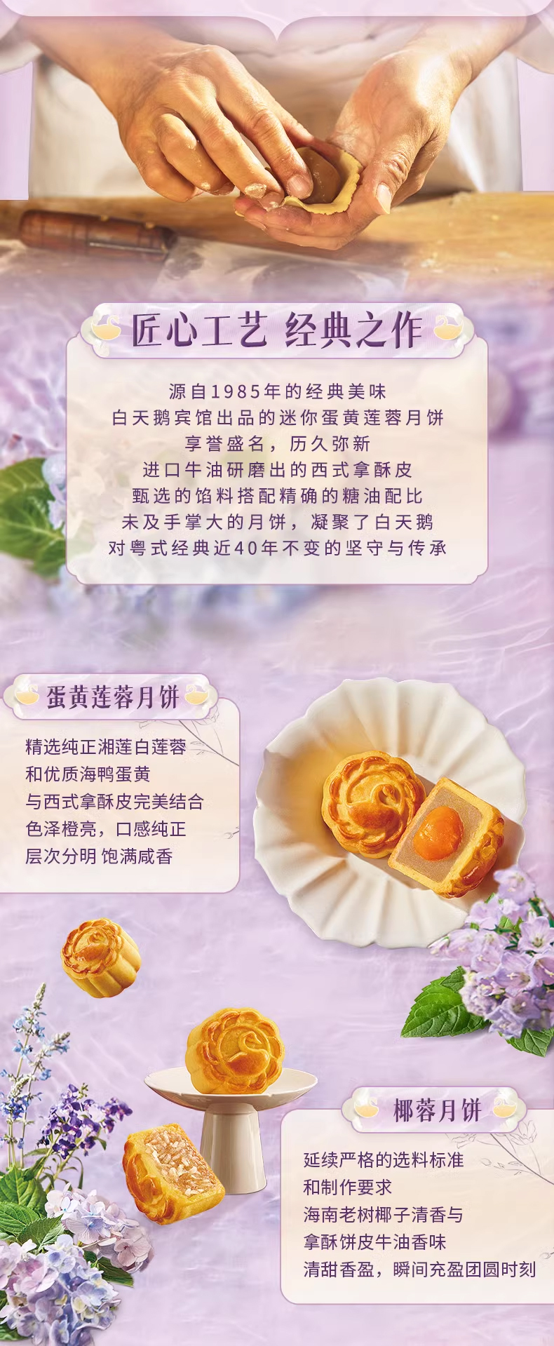 白天鹅宾馆 | 天鹅月经典月饼礼盒两款口味(蛋黄莲蓉8只装&椰蓉8只装)现货票券同售