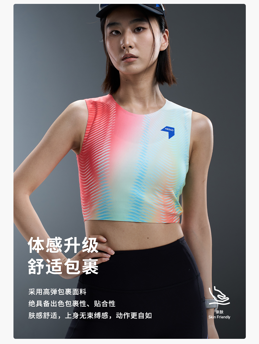 内道春夏新款印花紧身短款背心跑步舒适透气排汗训练马拉松背心女