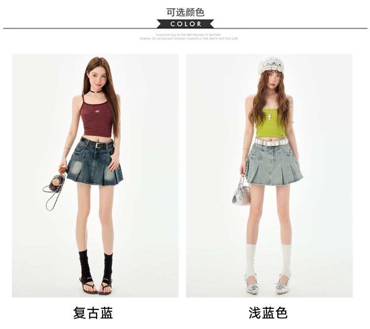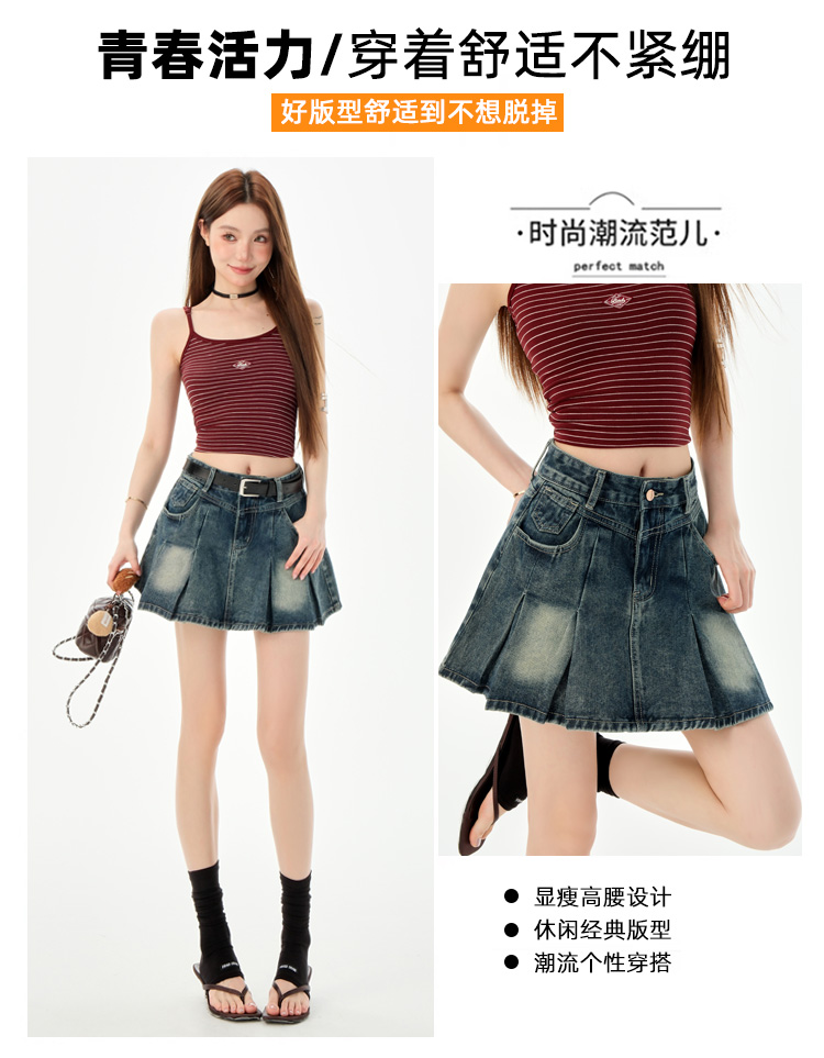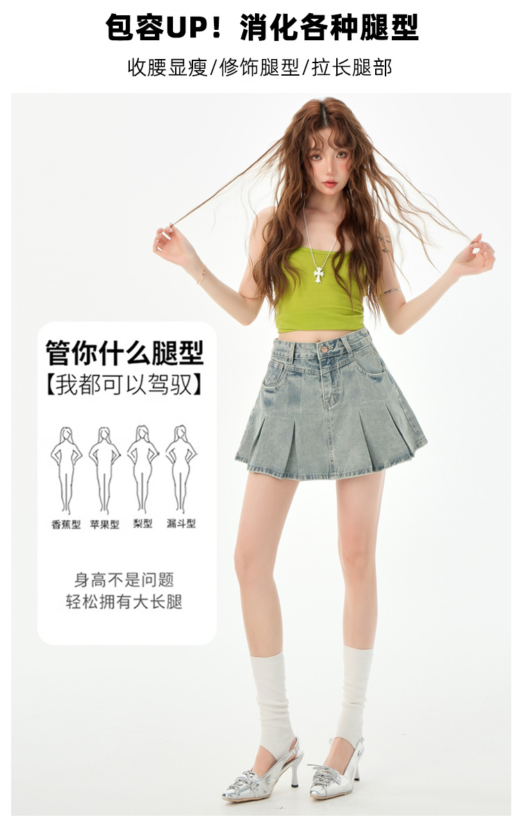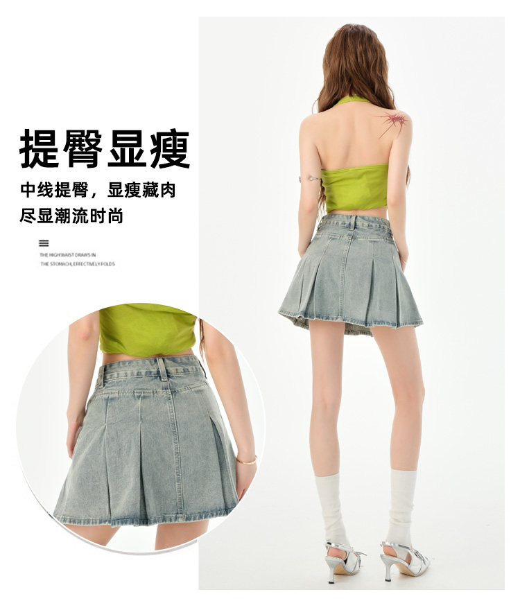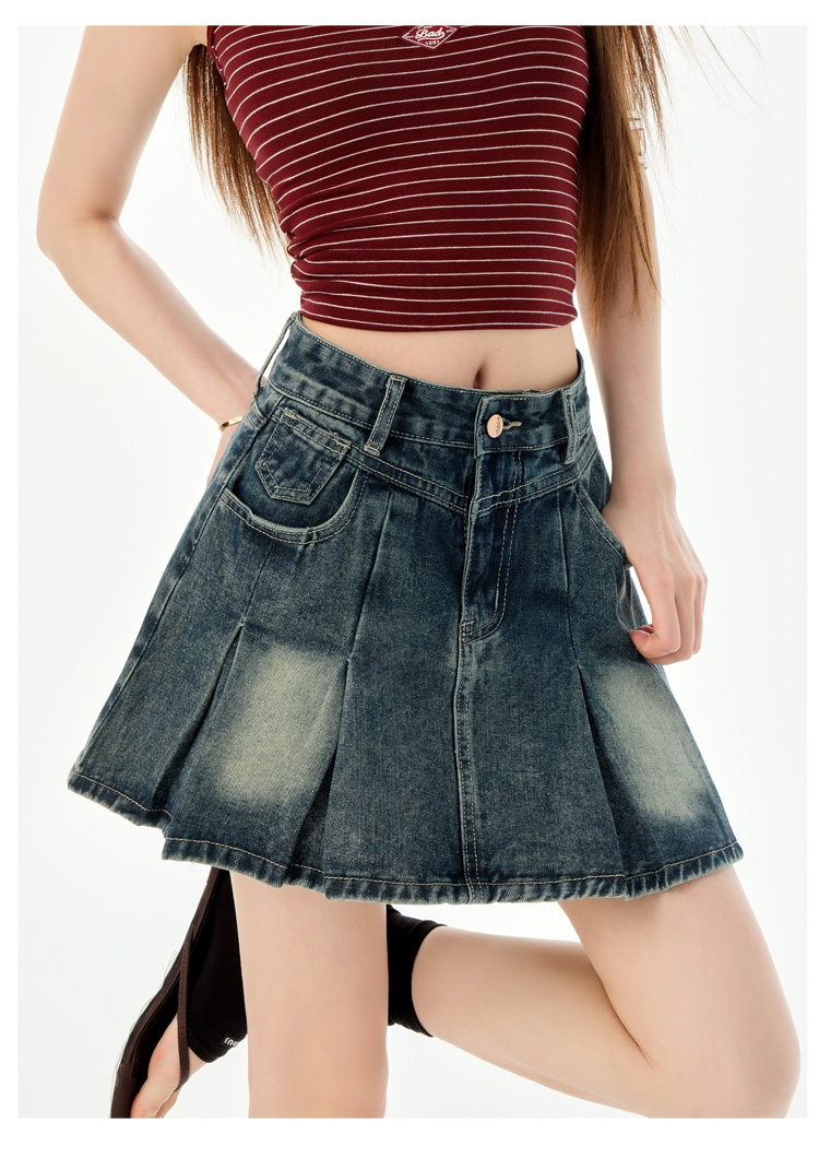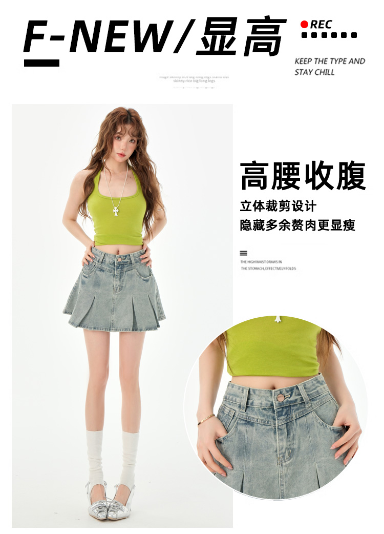 罗蒙女士夏季牛仔短裙休闲通勤高腰收腹显瘦A字裙修饰腿型女裙子