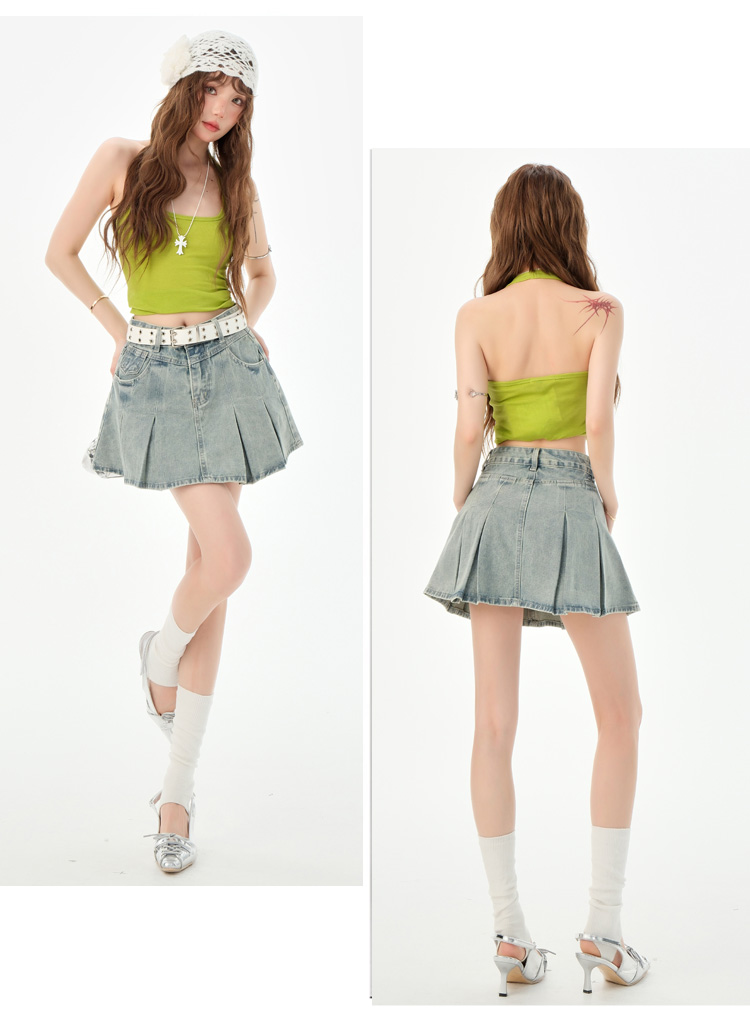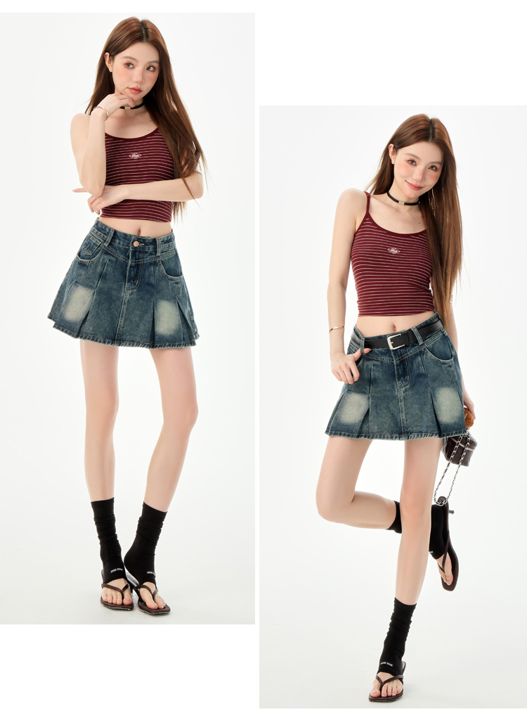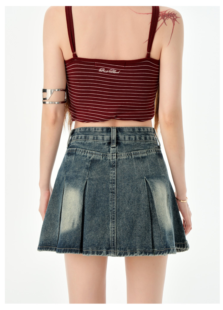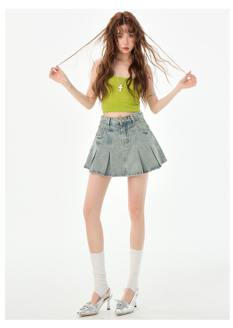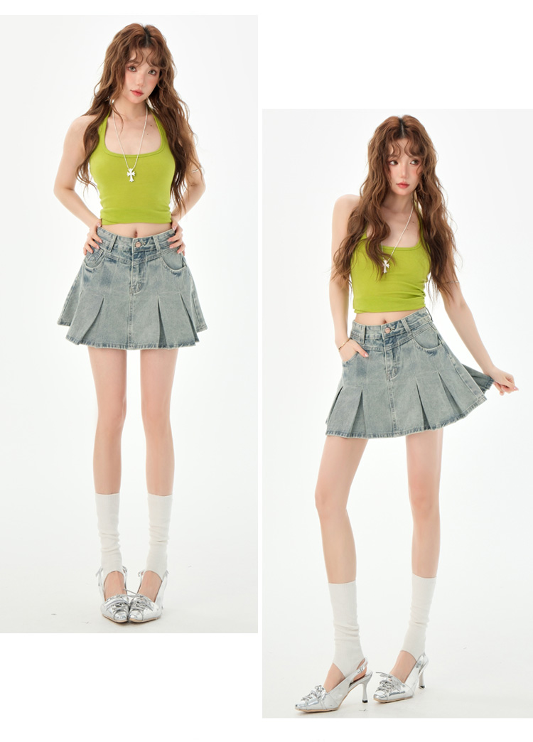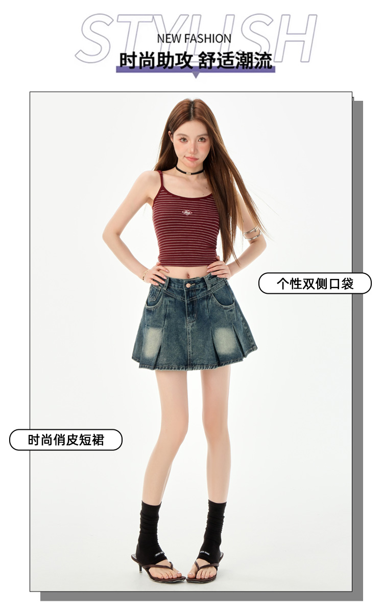 罗蒙女士夏季牛仔短裙休闲通勤高腰收腹显瘦A字裙修饰腿型女裙子
