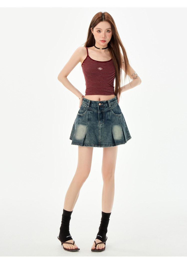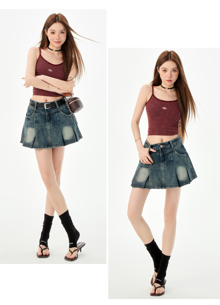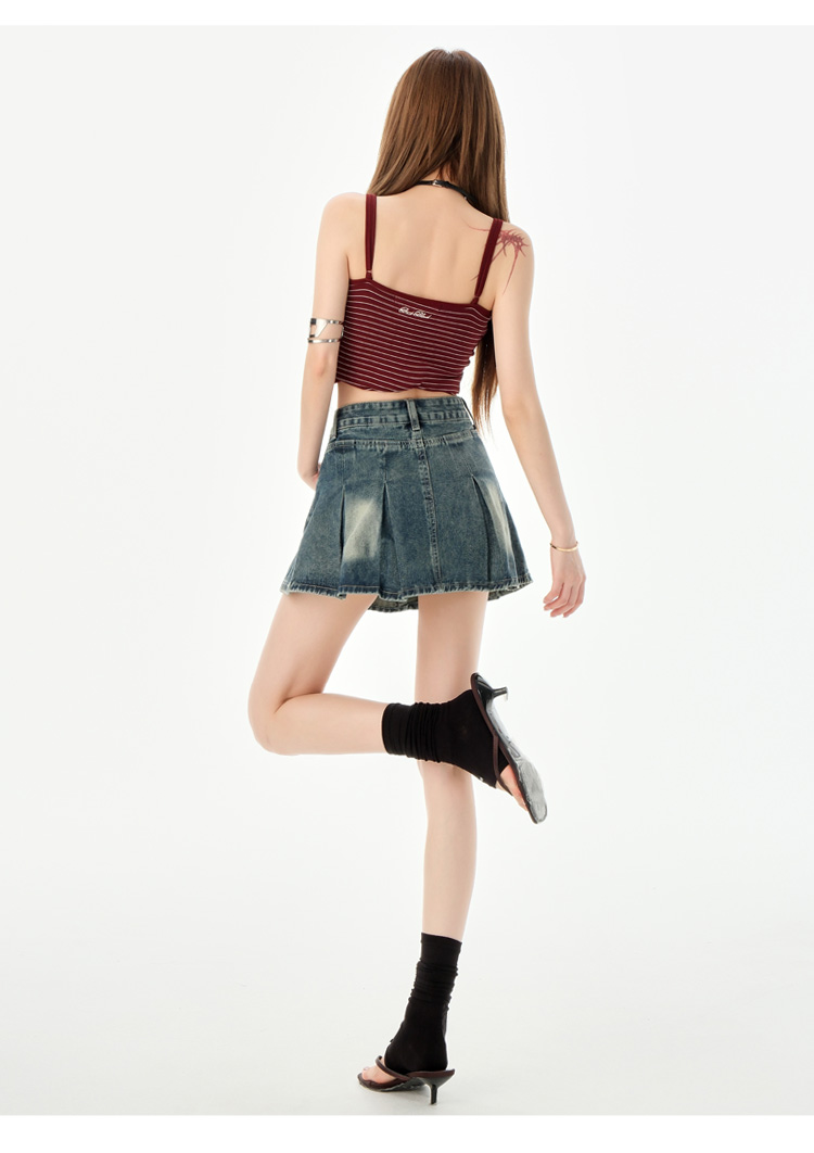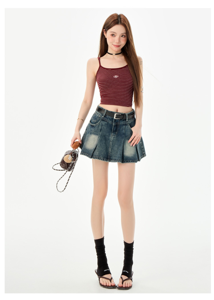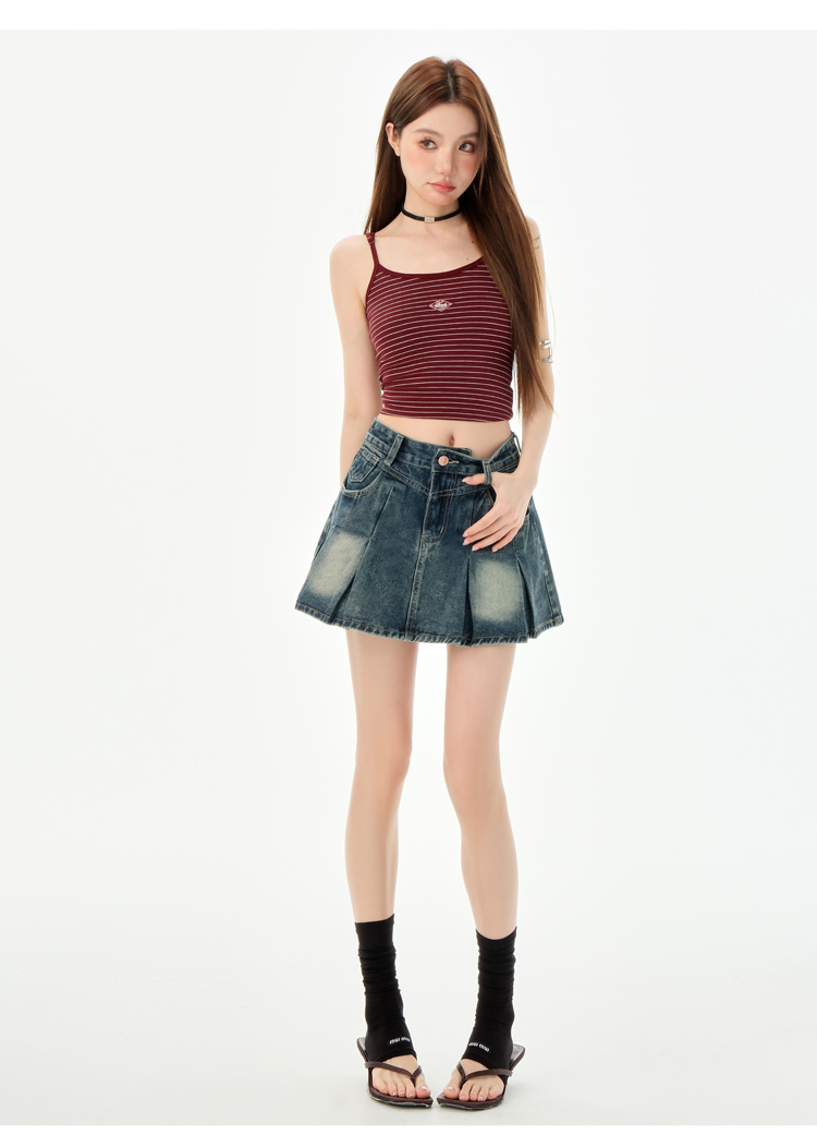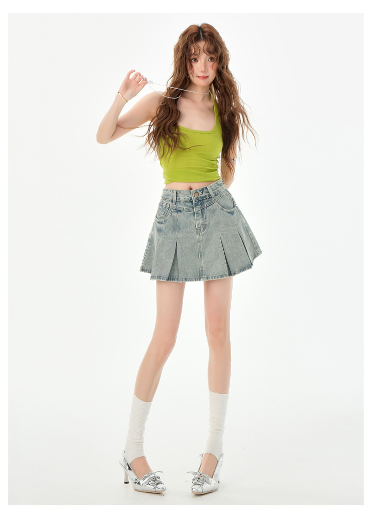 罗蒙女士夏季牛仔短裙休闲通勤高腰收腹显瘦A字裙修饰腿型女裙子
