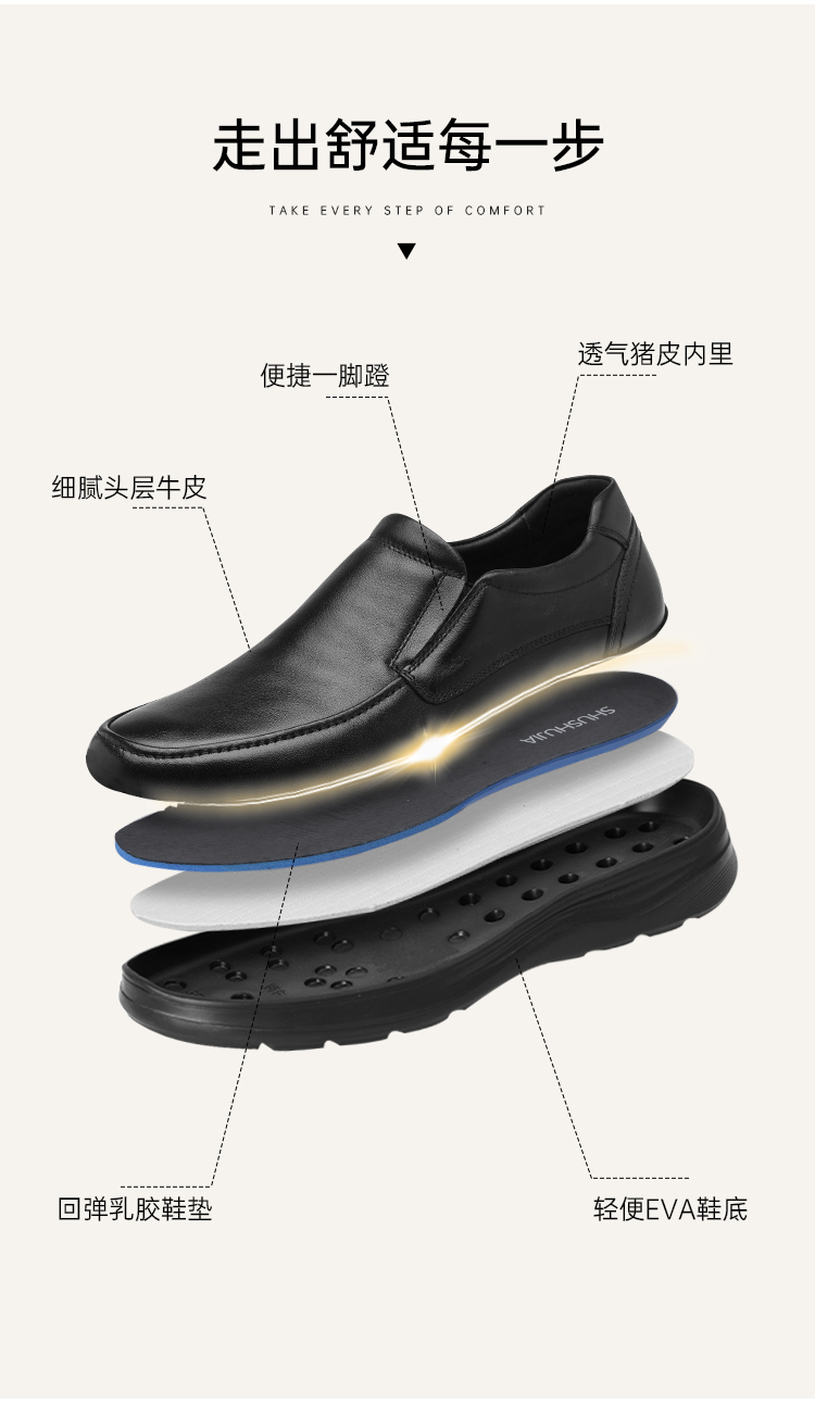 【轻便一脚蹬皮鞋】通勤商务正装皮鞋 快速穿脱牛皮皮鞋