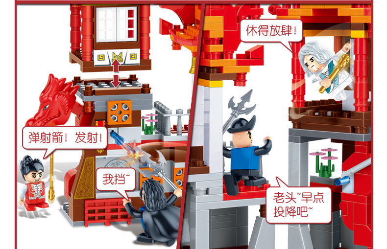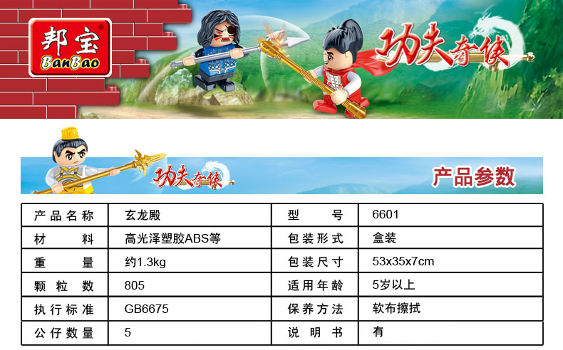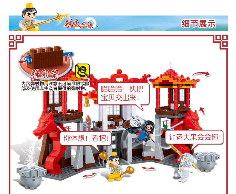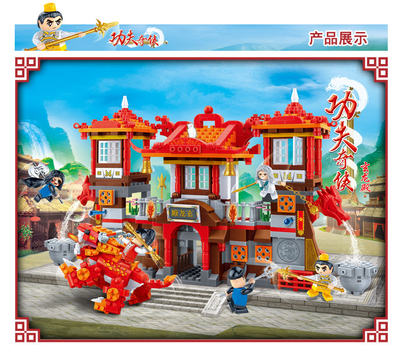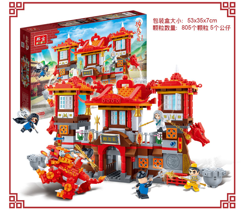 邦宝小颗粒功夫奇侠趣味益智积木教玩具玄龙殿6601