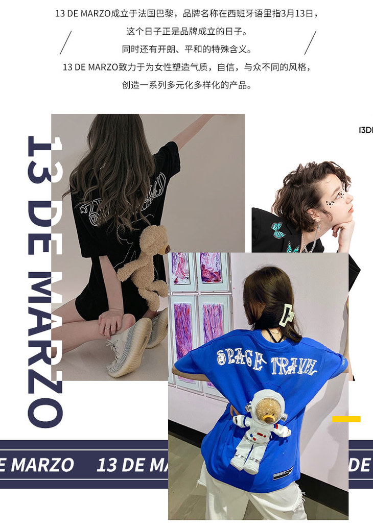 特价秒杀 13DE MARZO 后背宇航熊T恤.潮快闪[福利品]