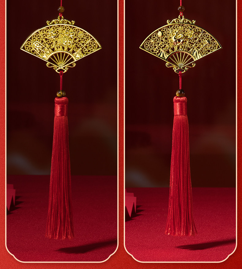 铜师傅《一路平安》真金鎏镀铜扇子挂件 家居装饰工艺品 书包挂件