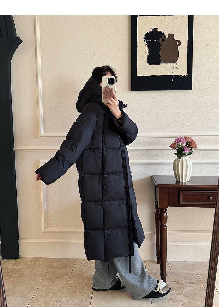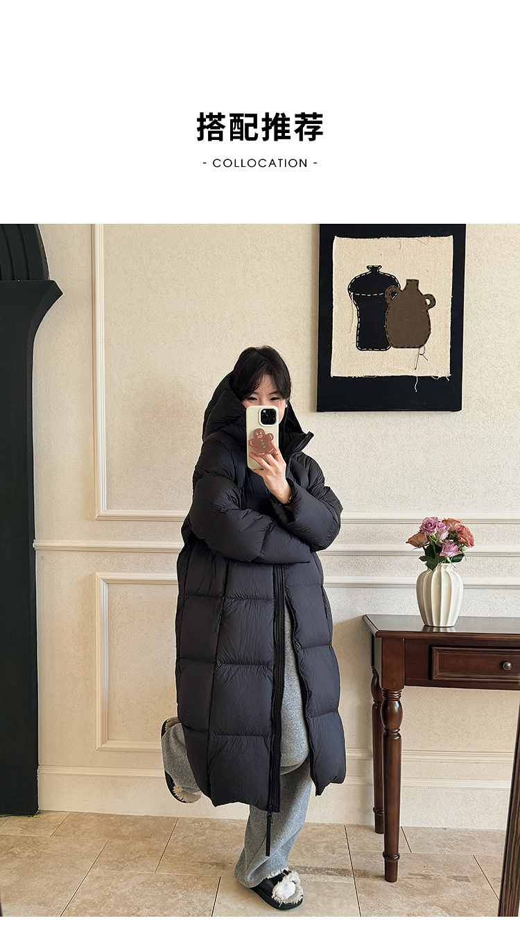 西遇时尚连帽长款棉服女冬季新款高级感轻便保暖面包服外套SS051928