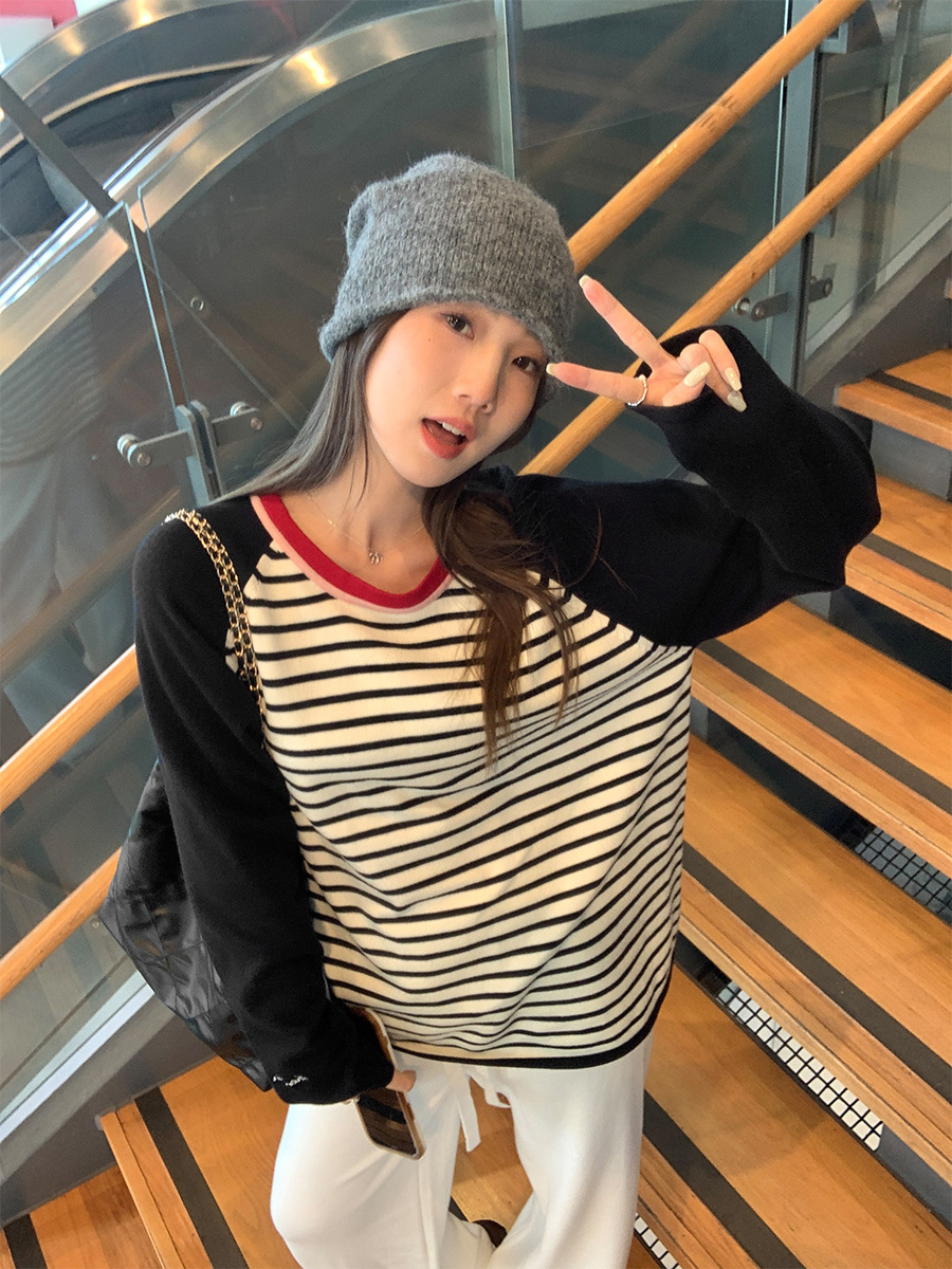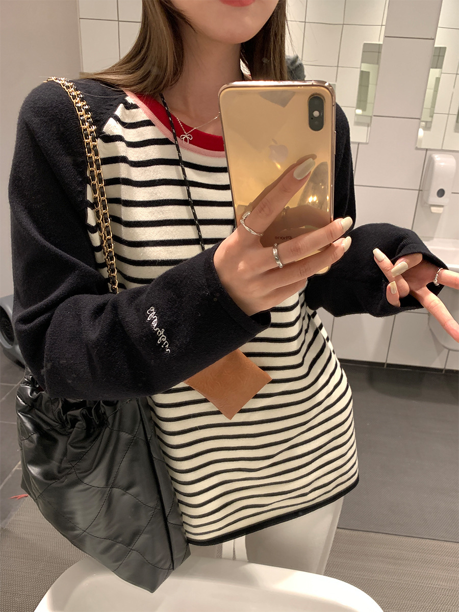 <曾小咸推荐> 黑白条纹撞色针织长袖 日常109/件 活动价89.99/件!【预售款,预计3-15天发货】