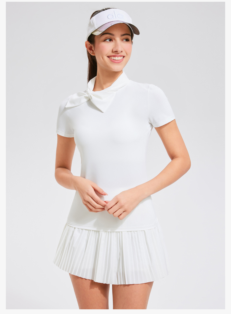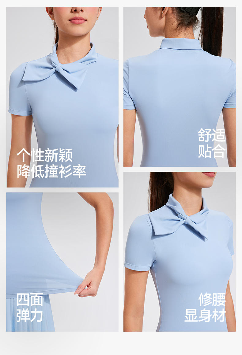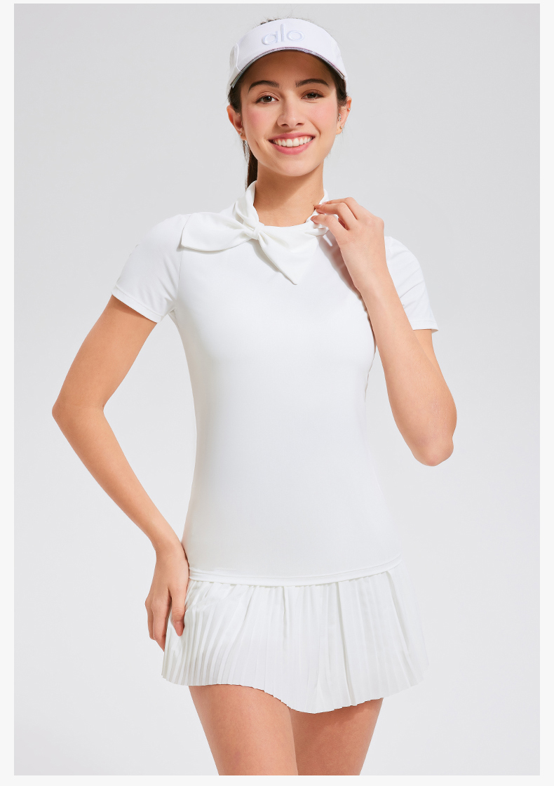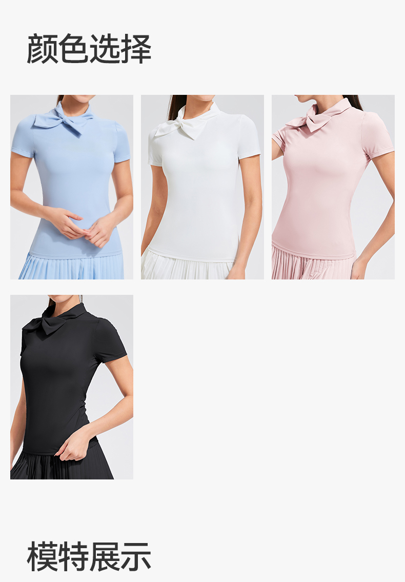 【上新】科里芙时尚设计感蝴蝶结高领修身运动短袖健身跑步T恤女