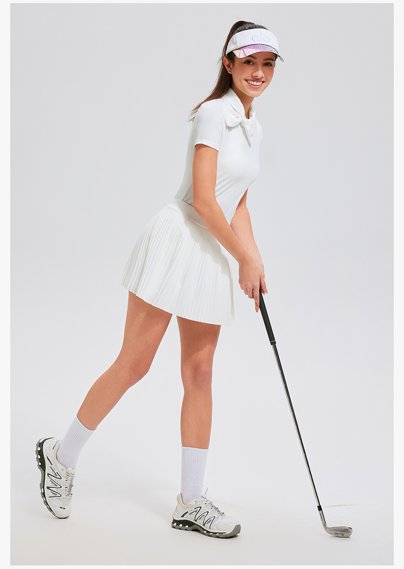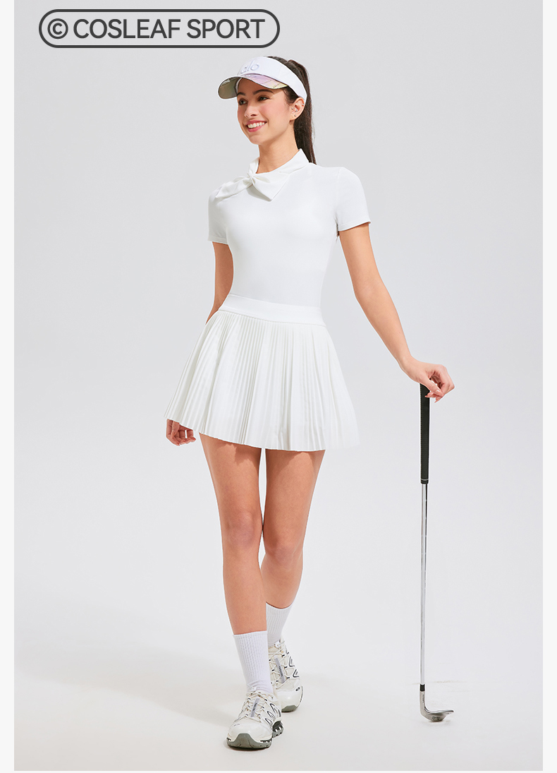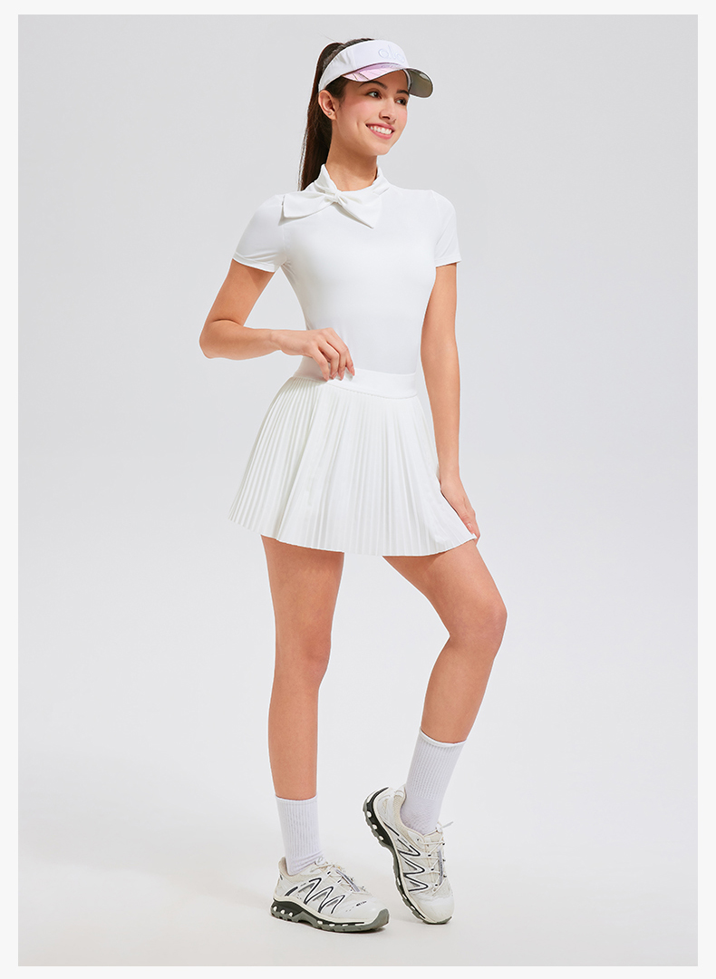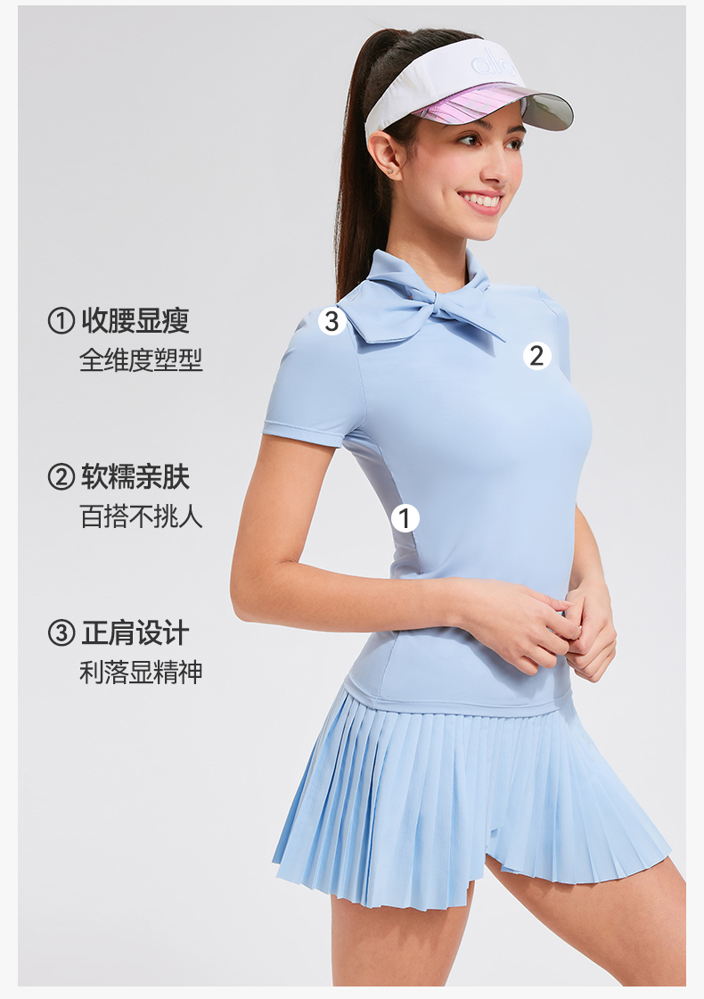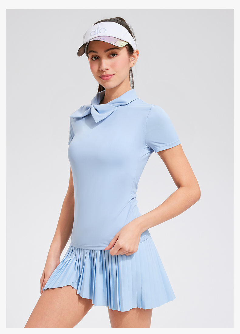 【上新】科里芙时尚设计感蝴蝶结高领修身运动短袖健身跑步T恤女