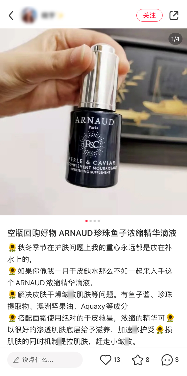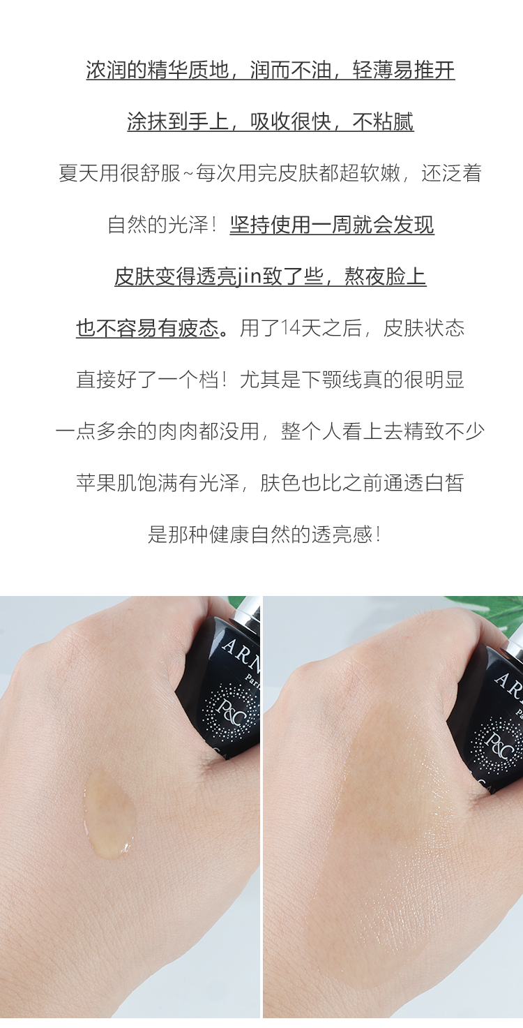 ARNAUD是法国美容院线的品牌,小众确是一颗不折不扣的大宝藏!Arnaud博士创始人于1940年建立,到现在已有八十多年的品牌历史,迄今已在30多个国家热销!曾经在某东有旗舰店,如今撤离了,这款鱼子酱精华是它家醉高端的系列,用料奢华,跟莱*妮走的是同样的路线,以前都是698元一只,