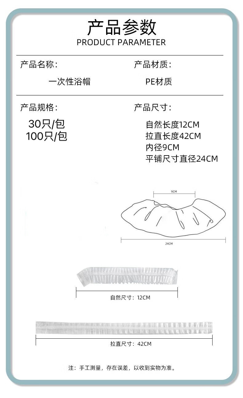 一次性浴帽防水防淋水PE加厚高压透明浴帽保鲜袋酒店宾馆洗漱用品
