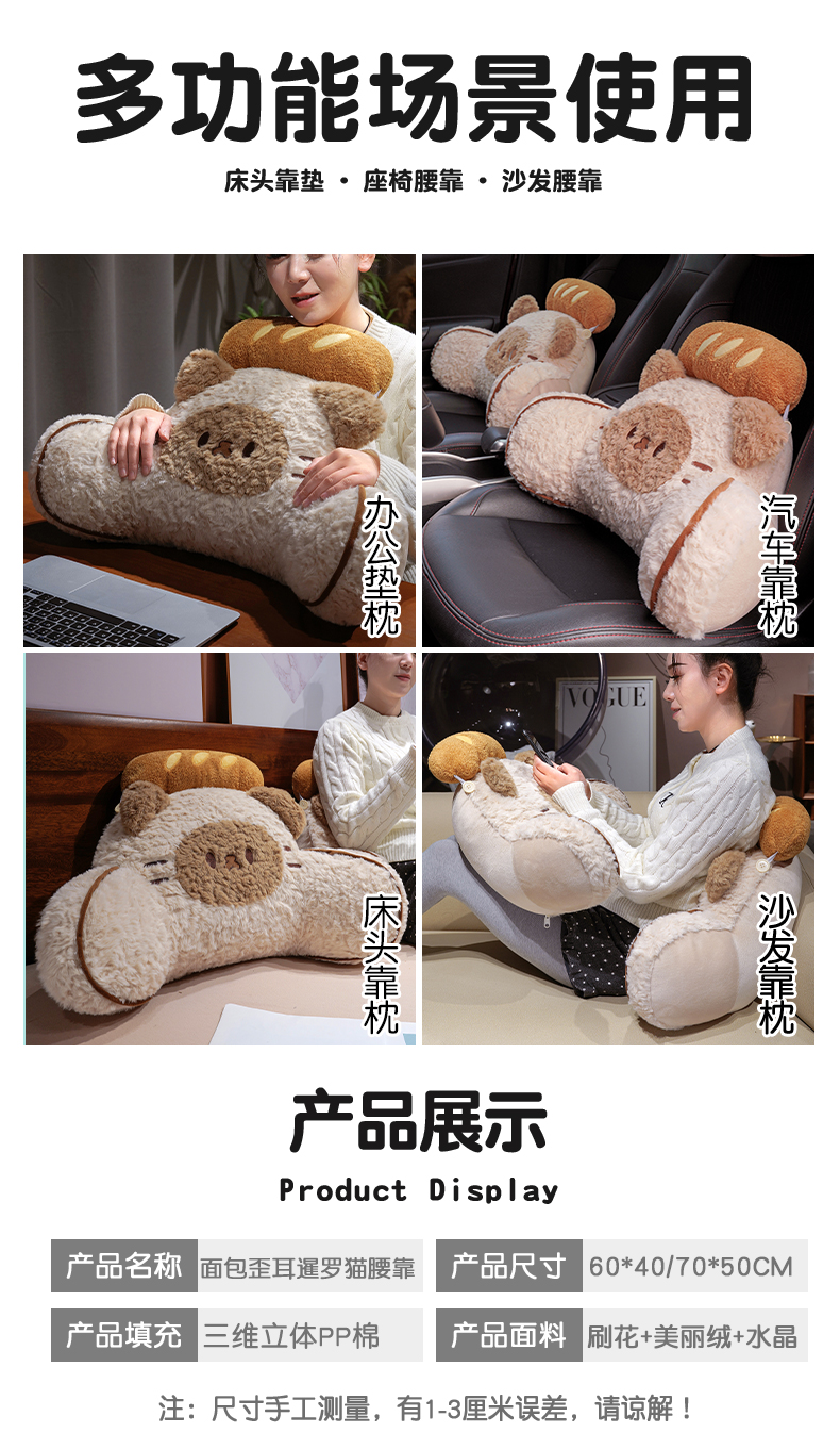 自然醒面包歪耳暹罗猫拥抱式腰靠QYL