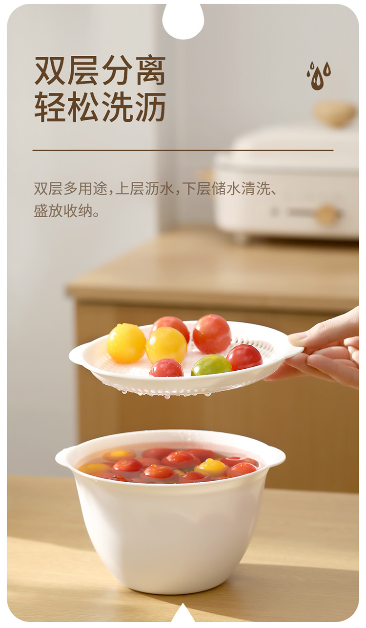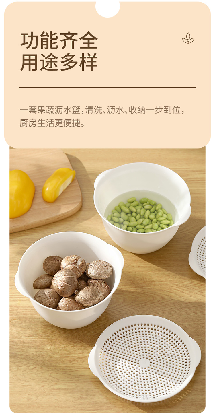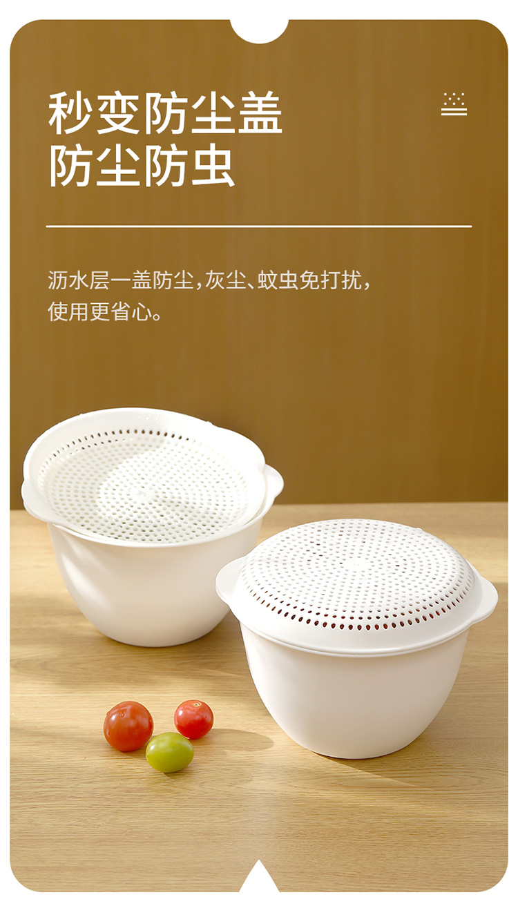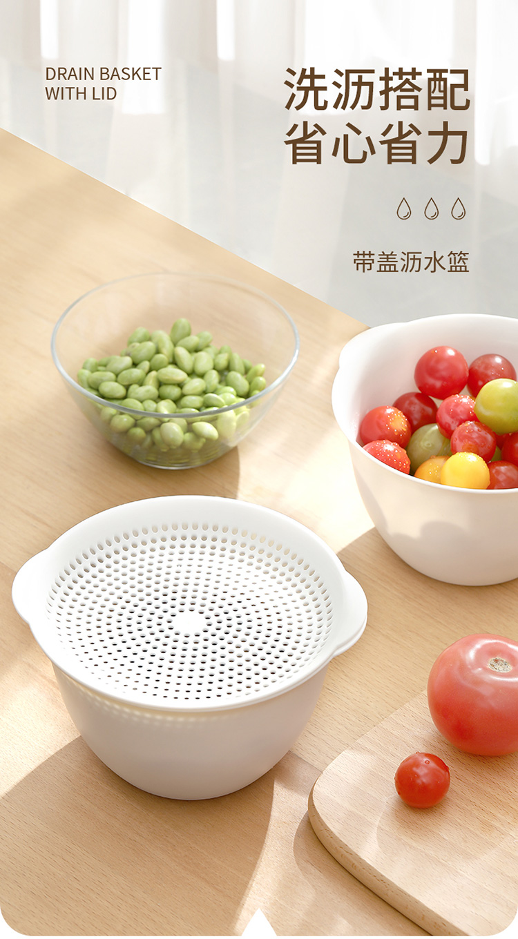 FaSoLa带盖沥水篮厨房淘米篮水果蔬菜篮家用沥水洗菜篮火锅备菜盆