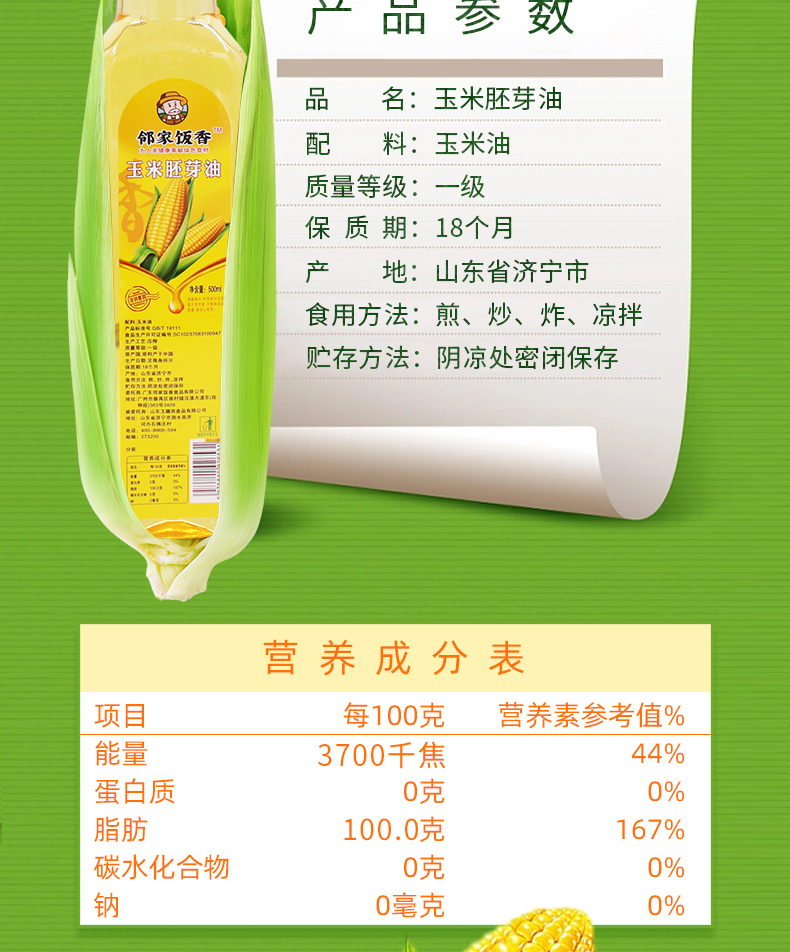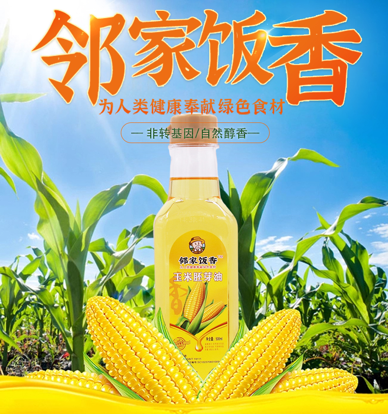 邻家饭香 非转基因 物理压榨一级玉米胚芽油 500ml每瓶 LJFX34