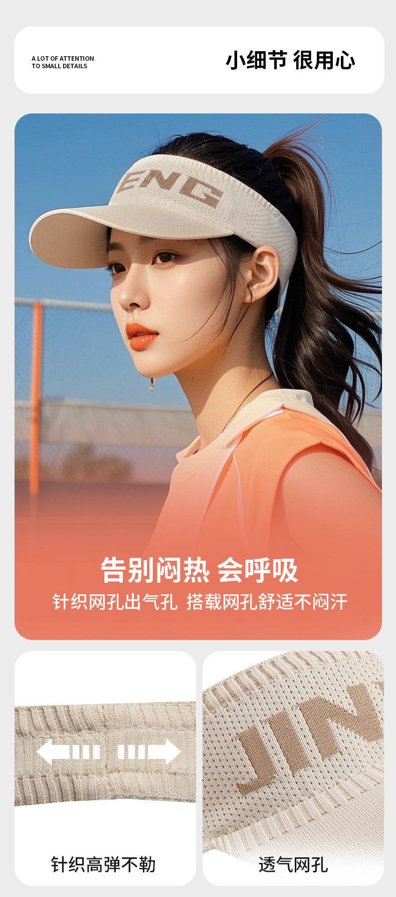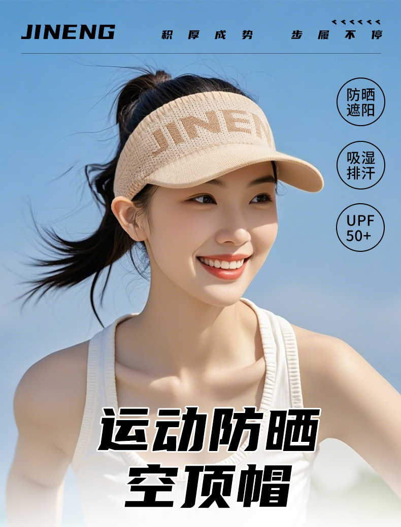【限时特惠19.9元】积能 跑步运动夏季男女空顶帽子骑车跑步防紫外线加长帽檐排汗帽