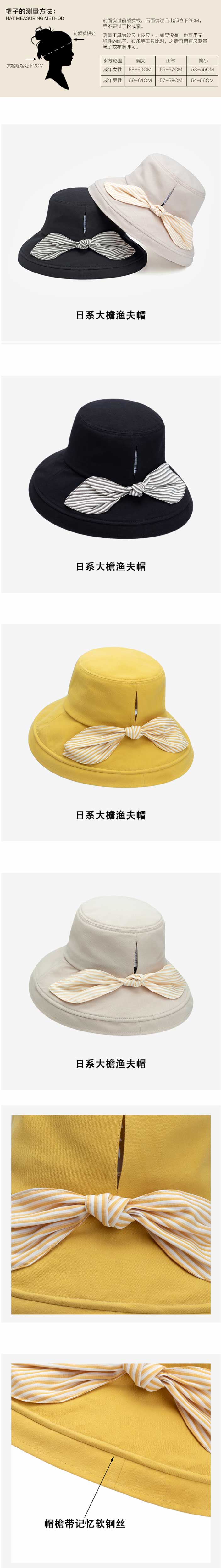 D.Jernny黛嘉霓蝴蝶结大檐夏季薄款透气遮阳防晒渔夫帽海边度假太阳帽MSB22WH118100