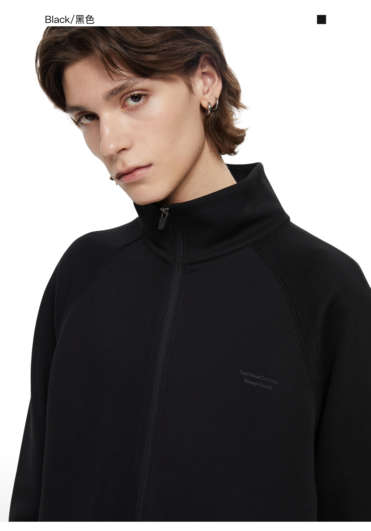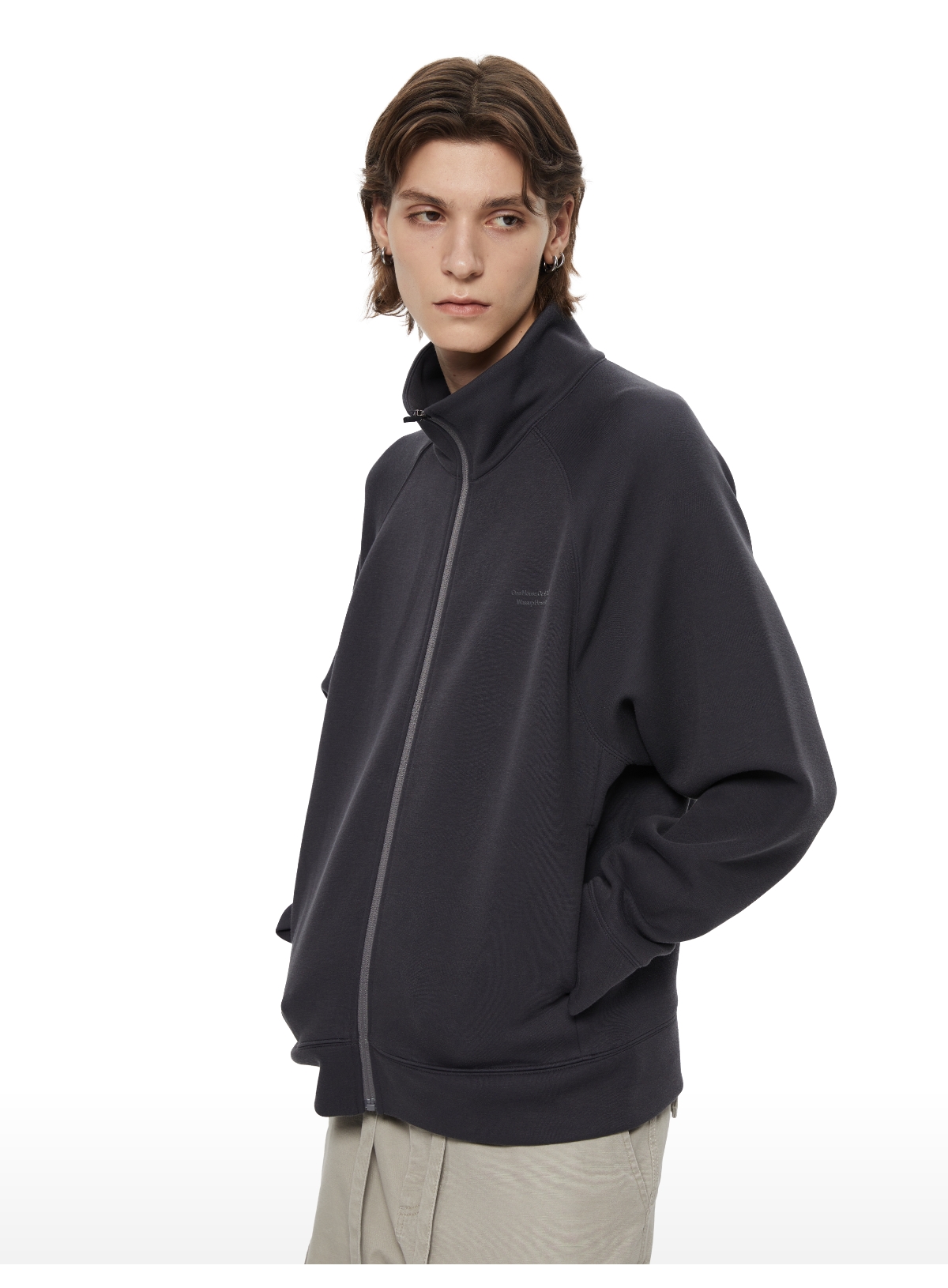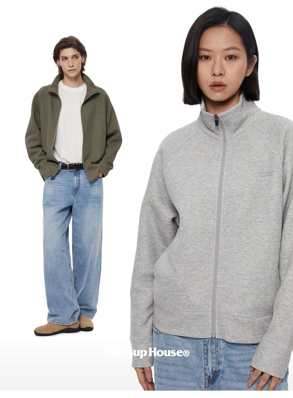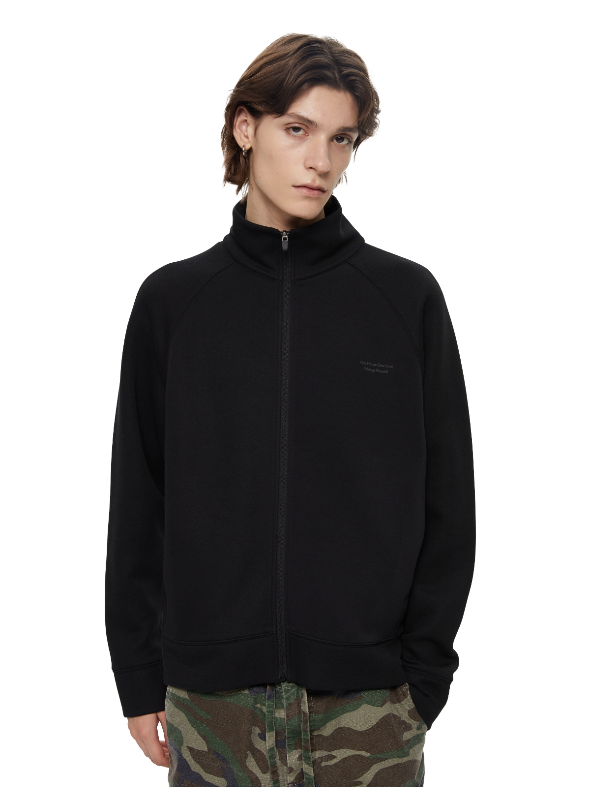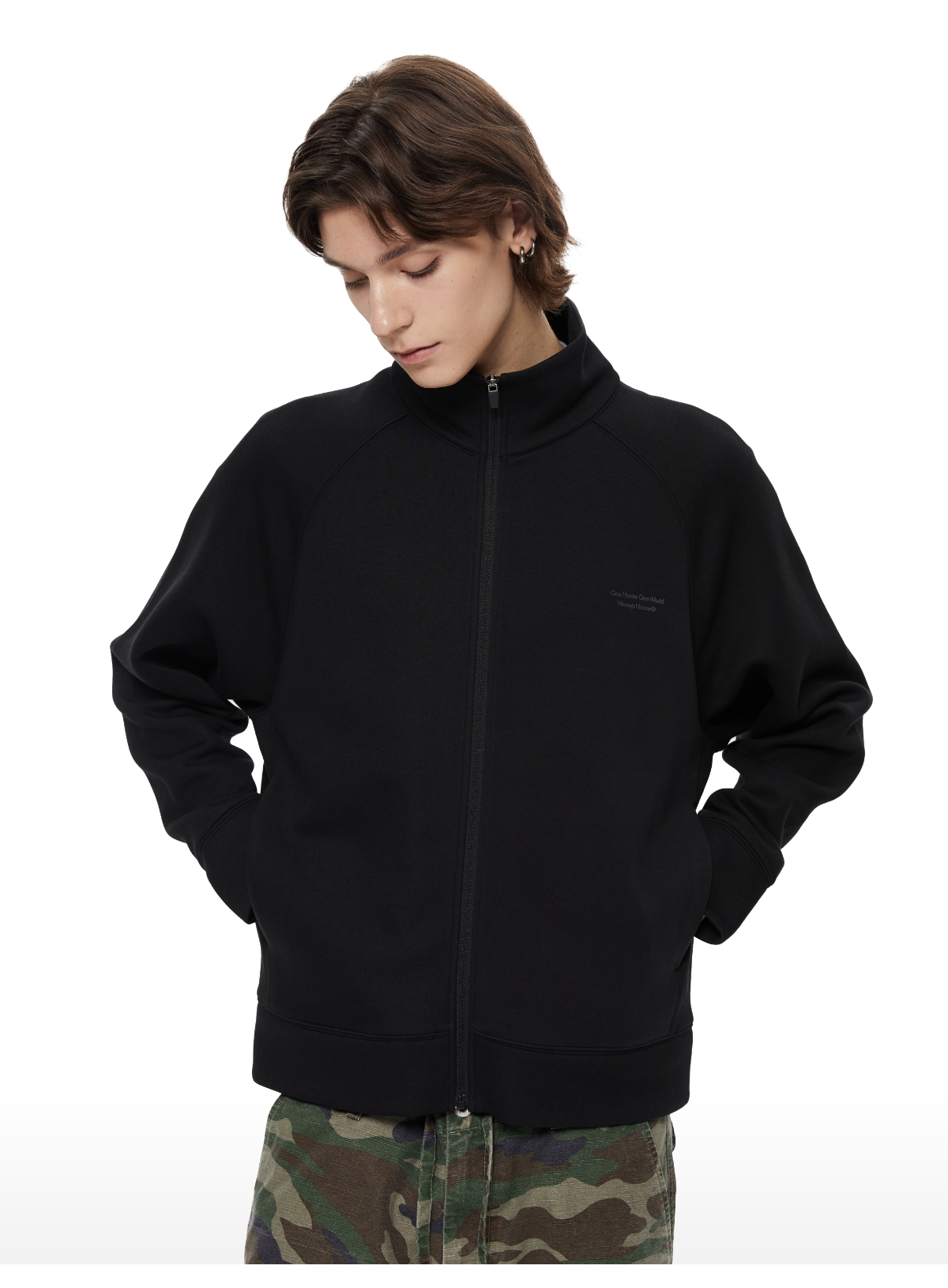 WassupHouse 空气棉立领插肩袖拉链卫衣