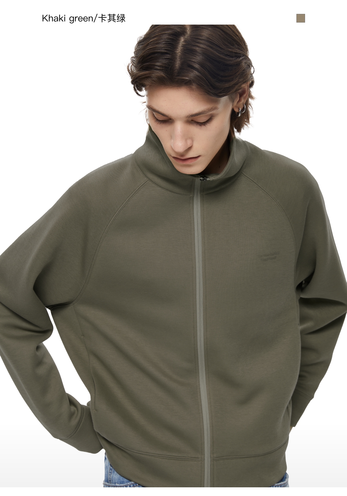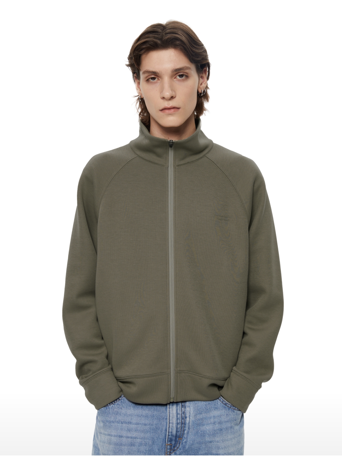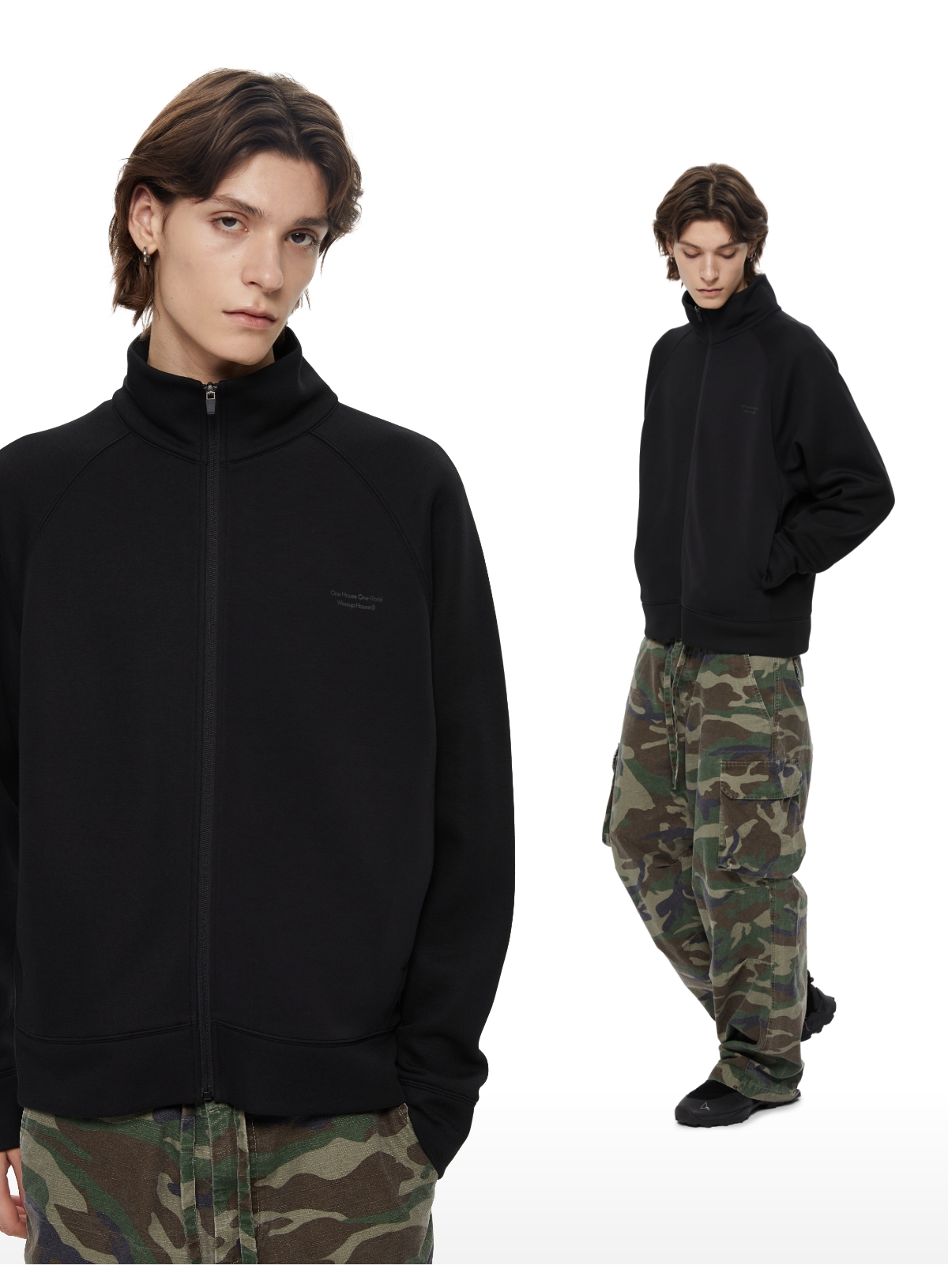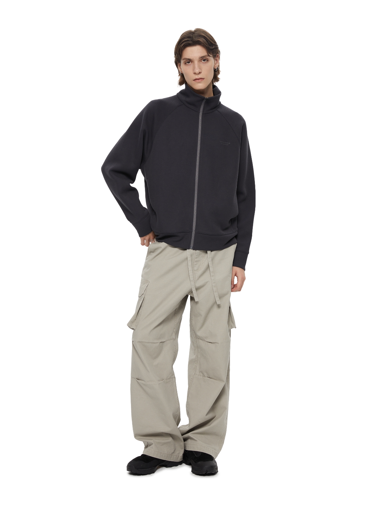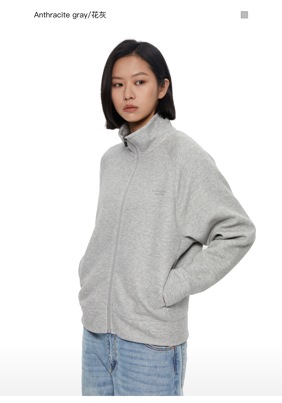 WassupHouse 空气棉立领插肩袖拉链卫衣