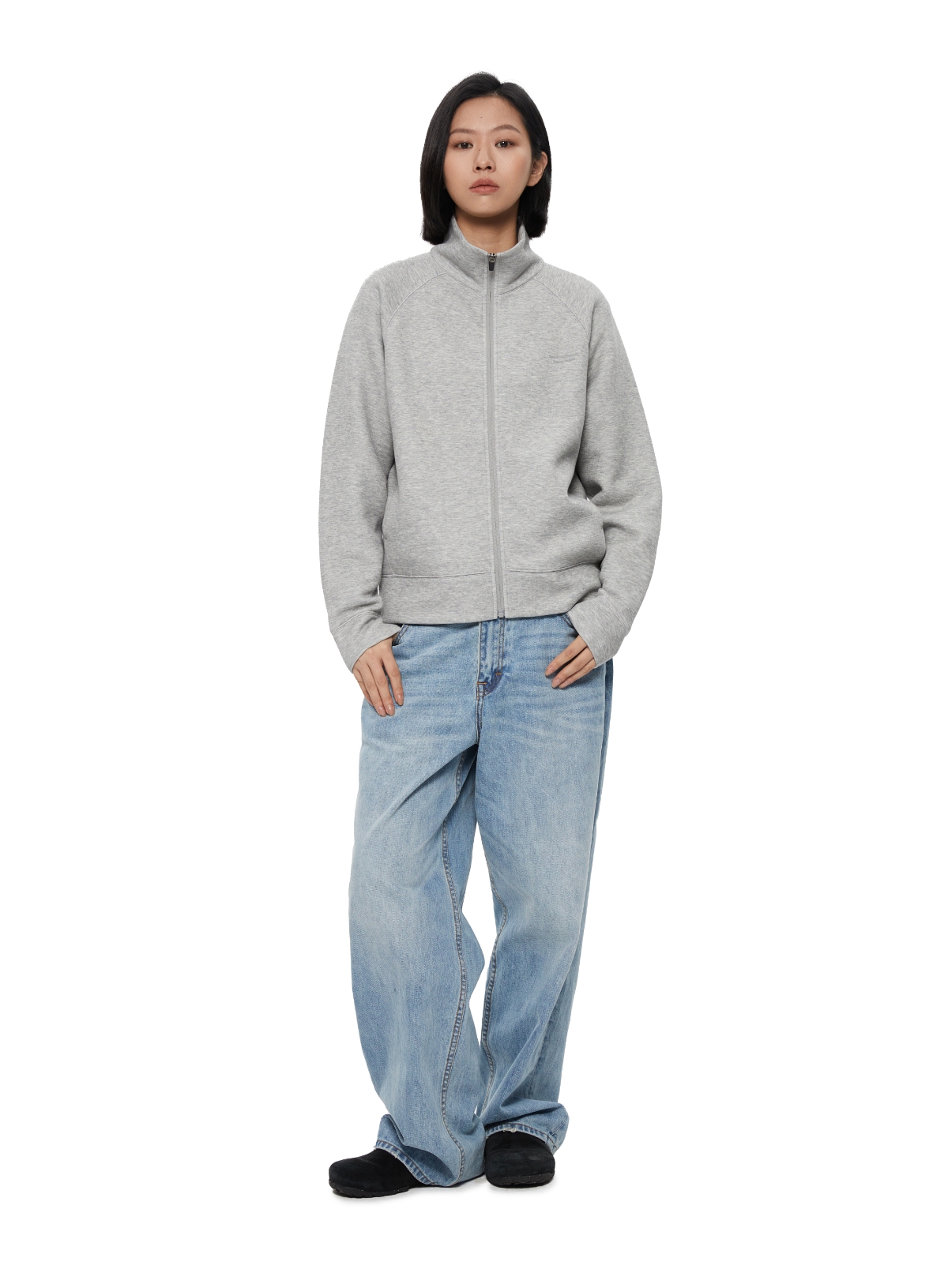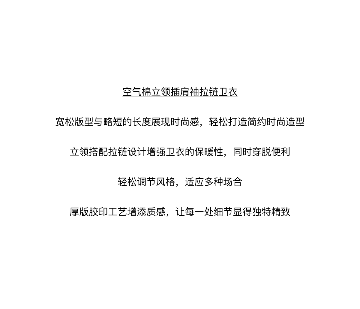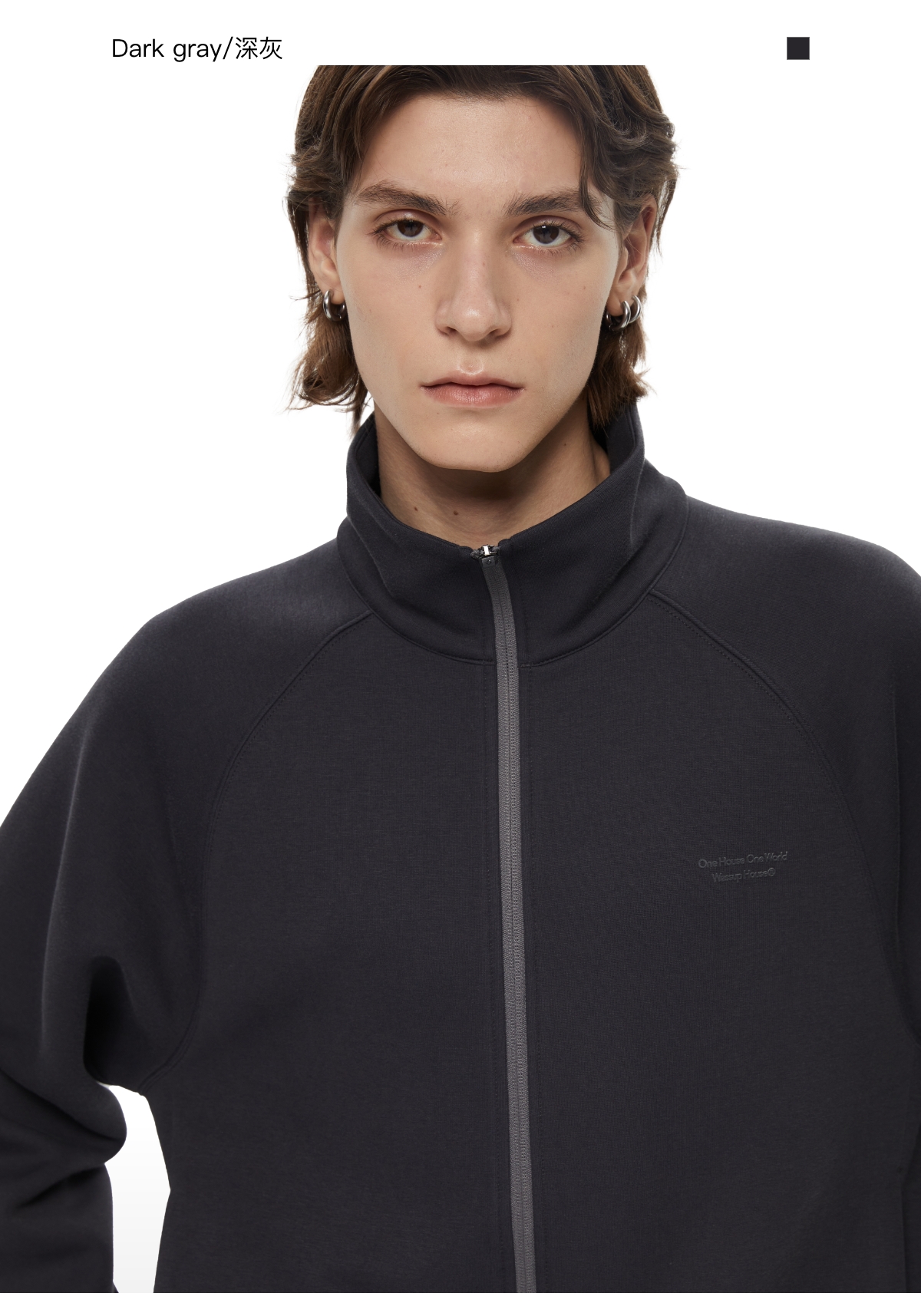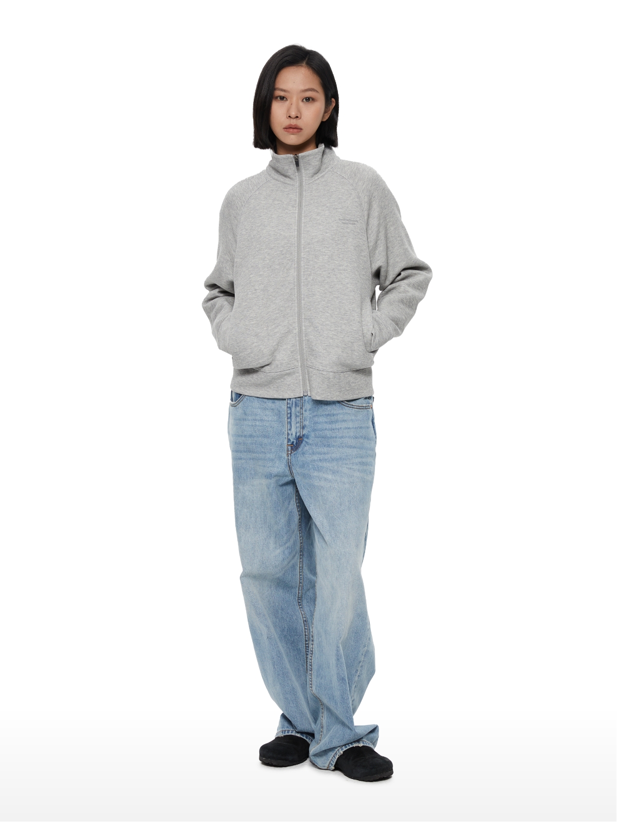 WassupHouse 空气棉立领插肩袖拉链卫衣