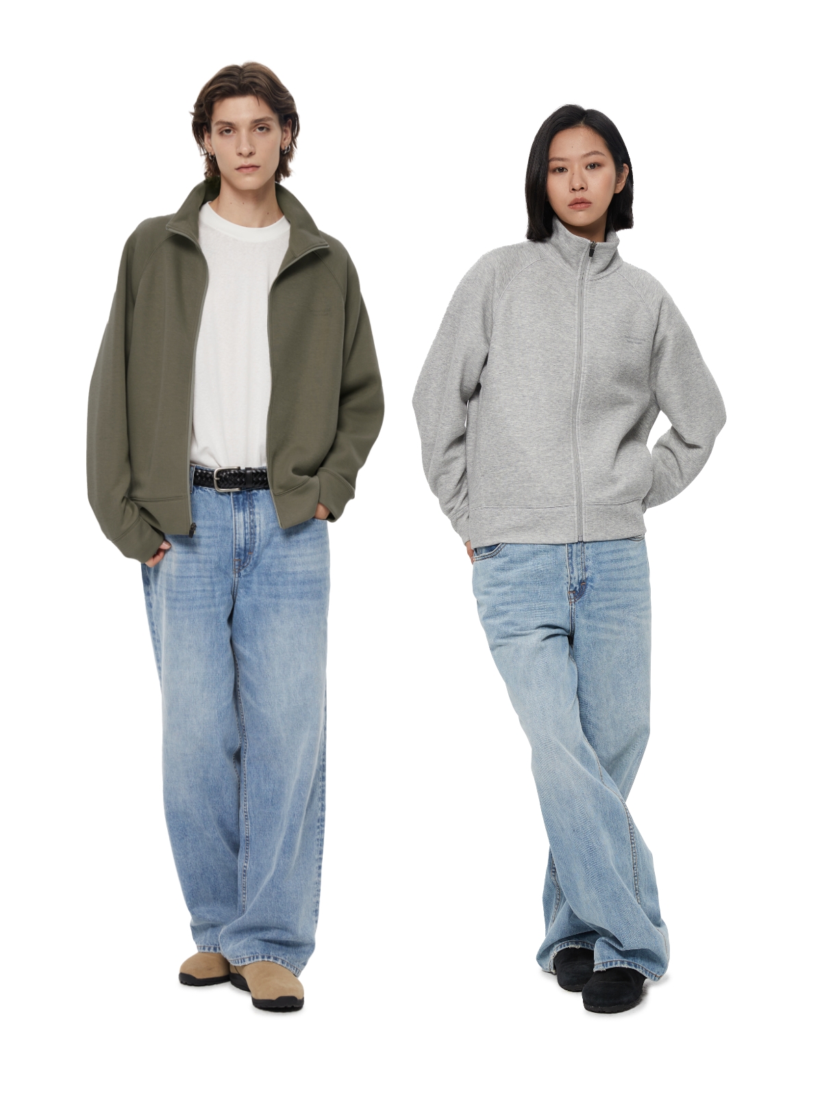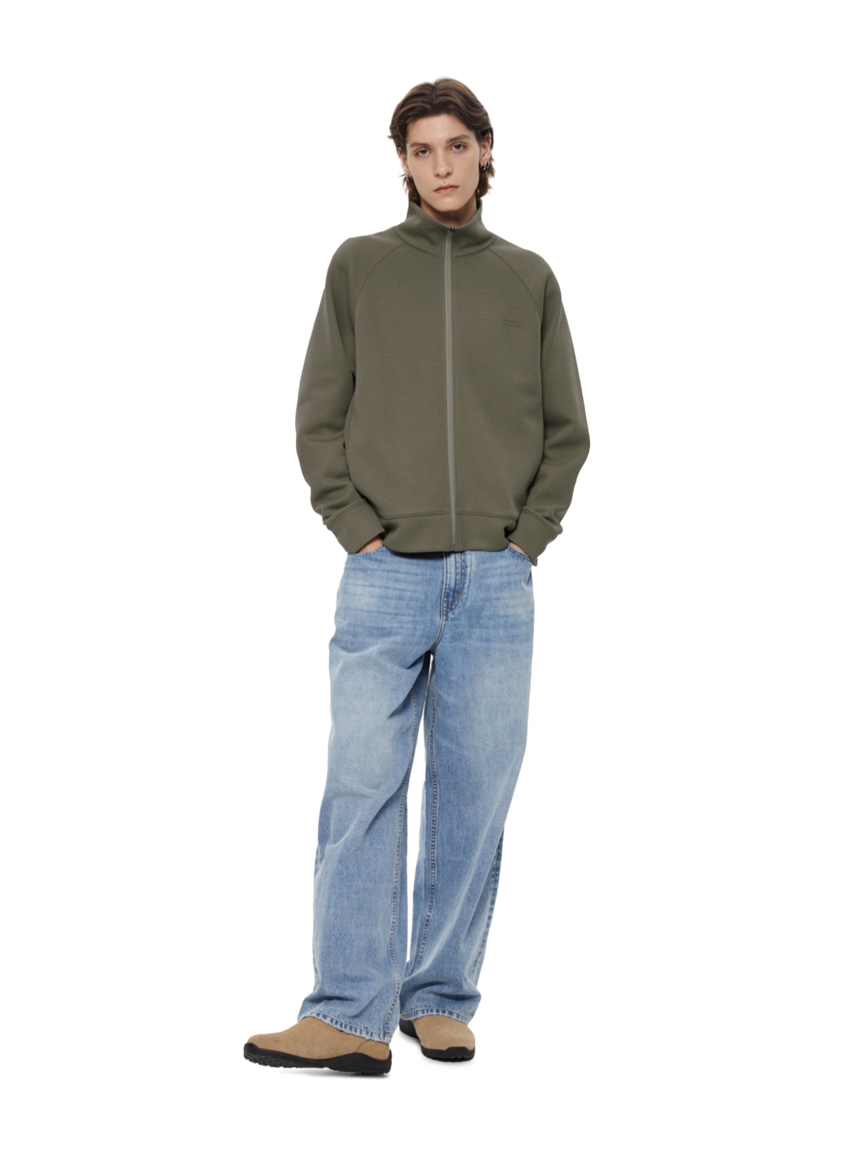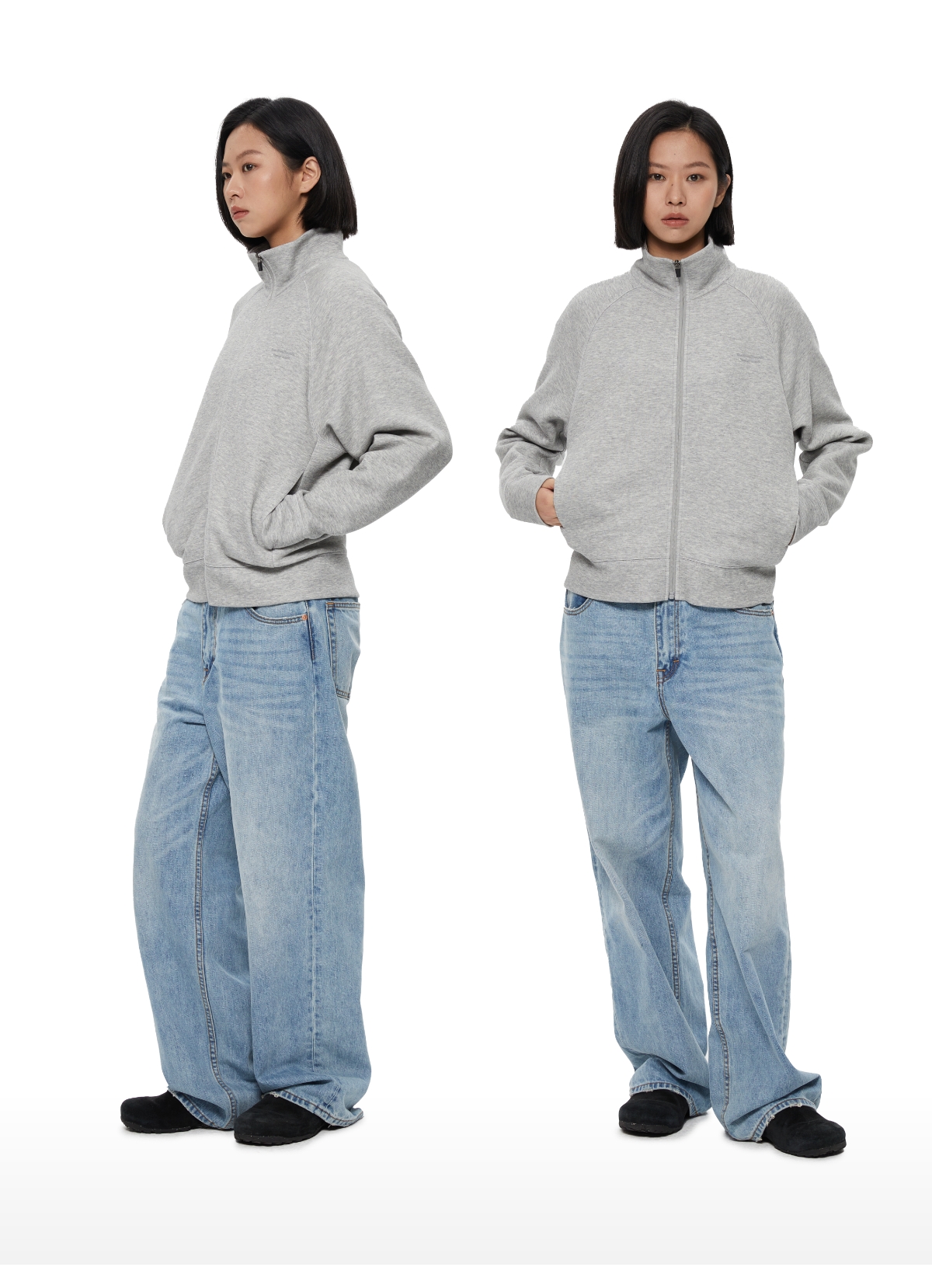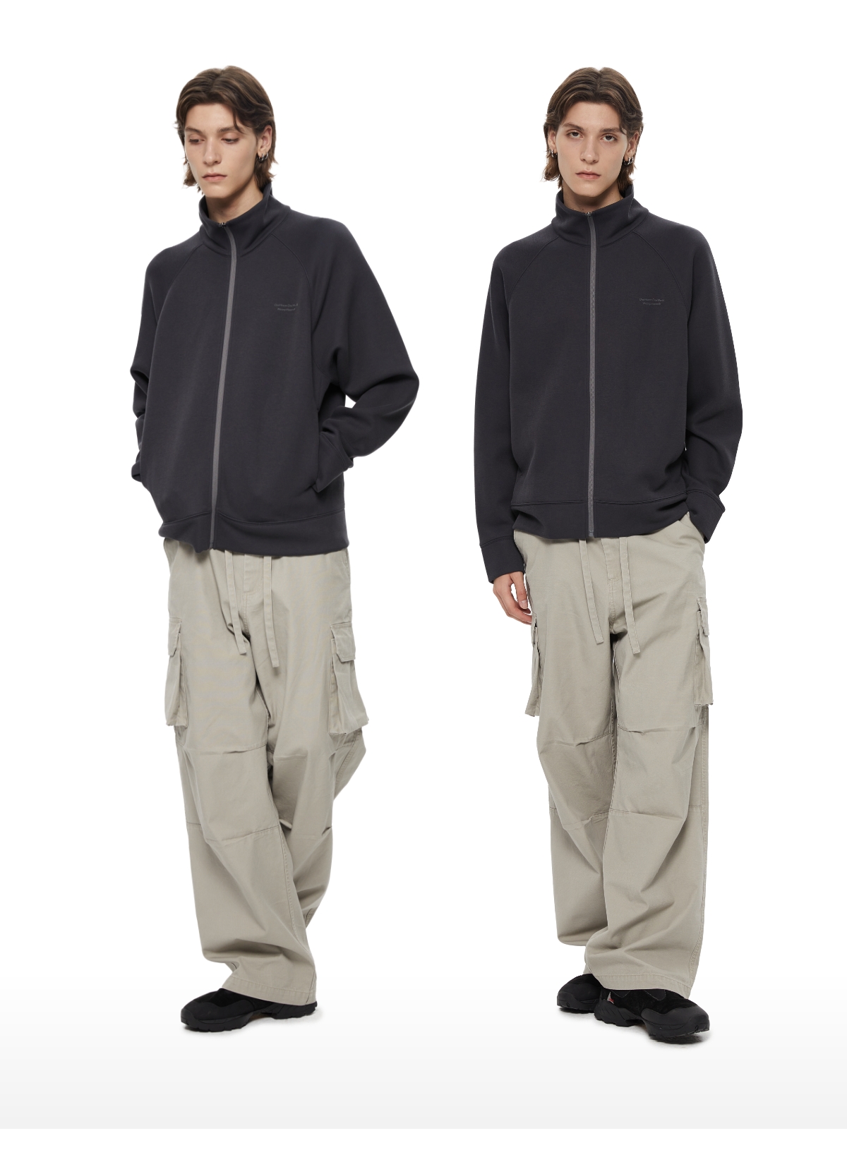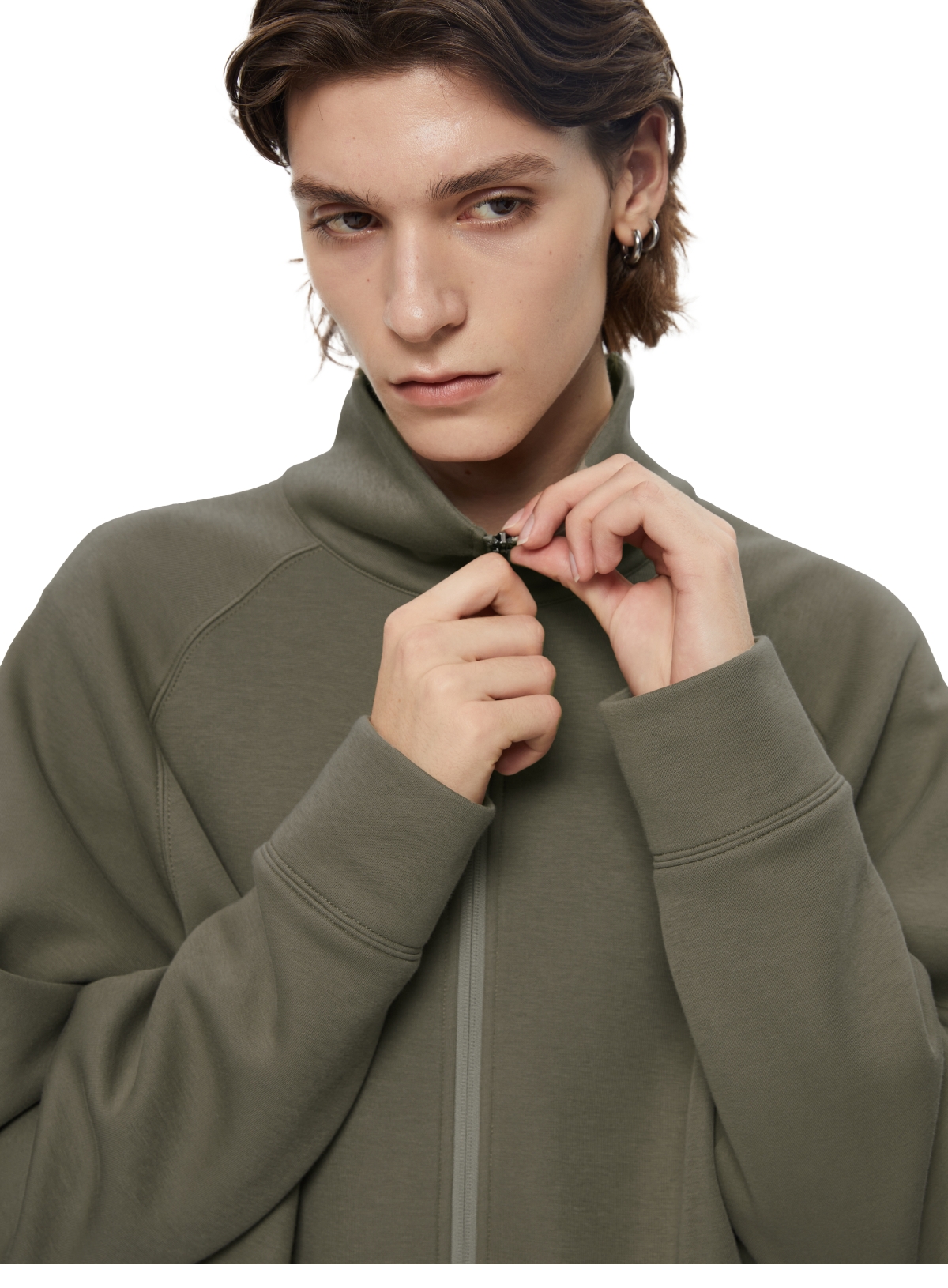 WassupHouse 空气棉立领插肩袖拉链卫衣