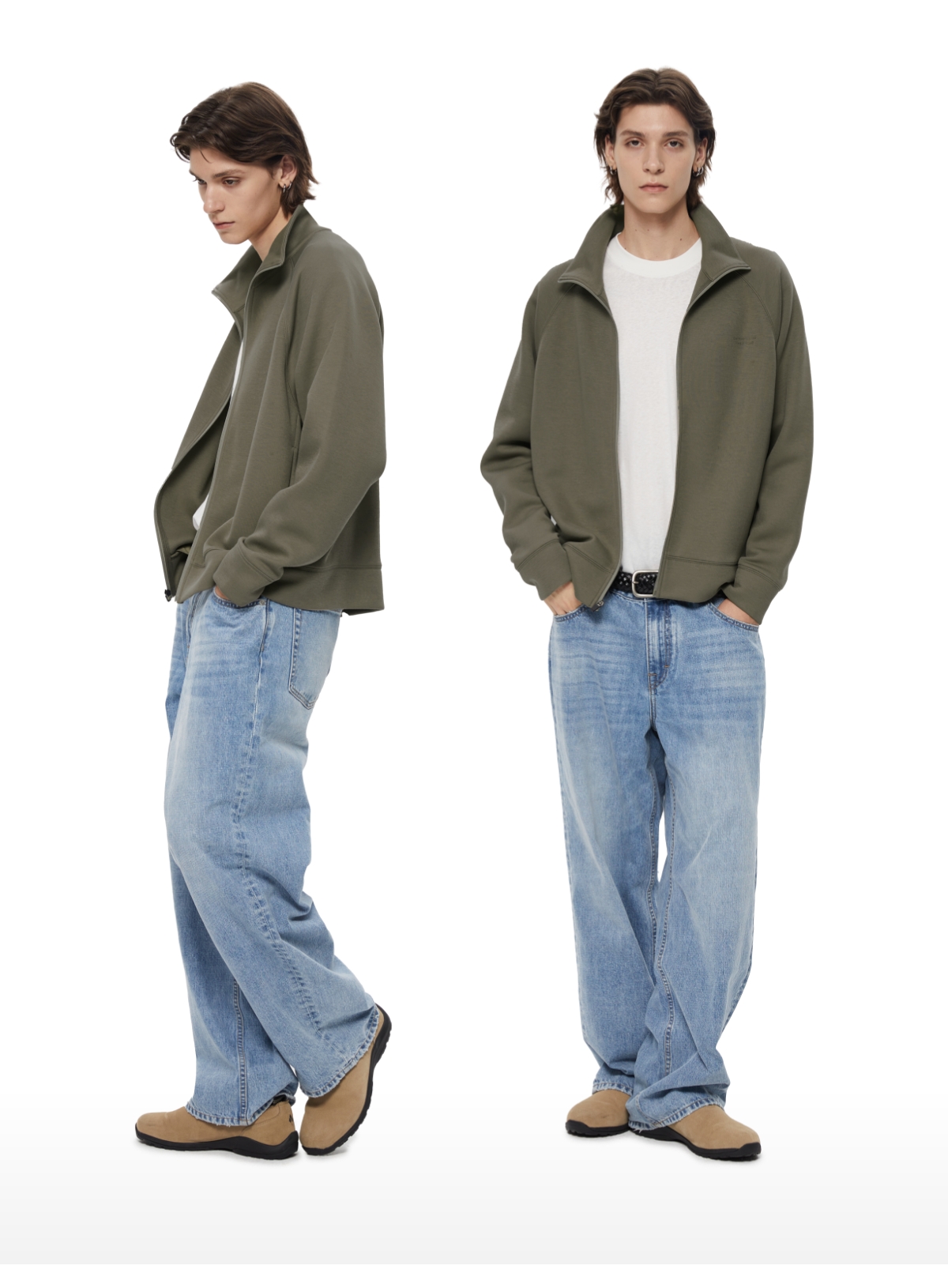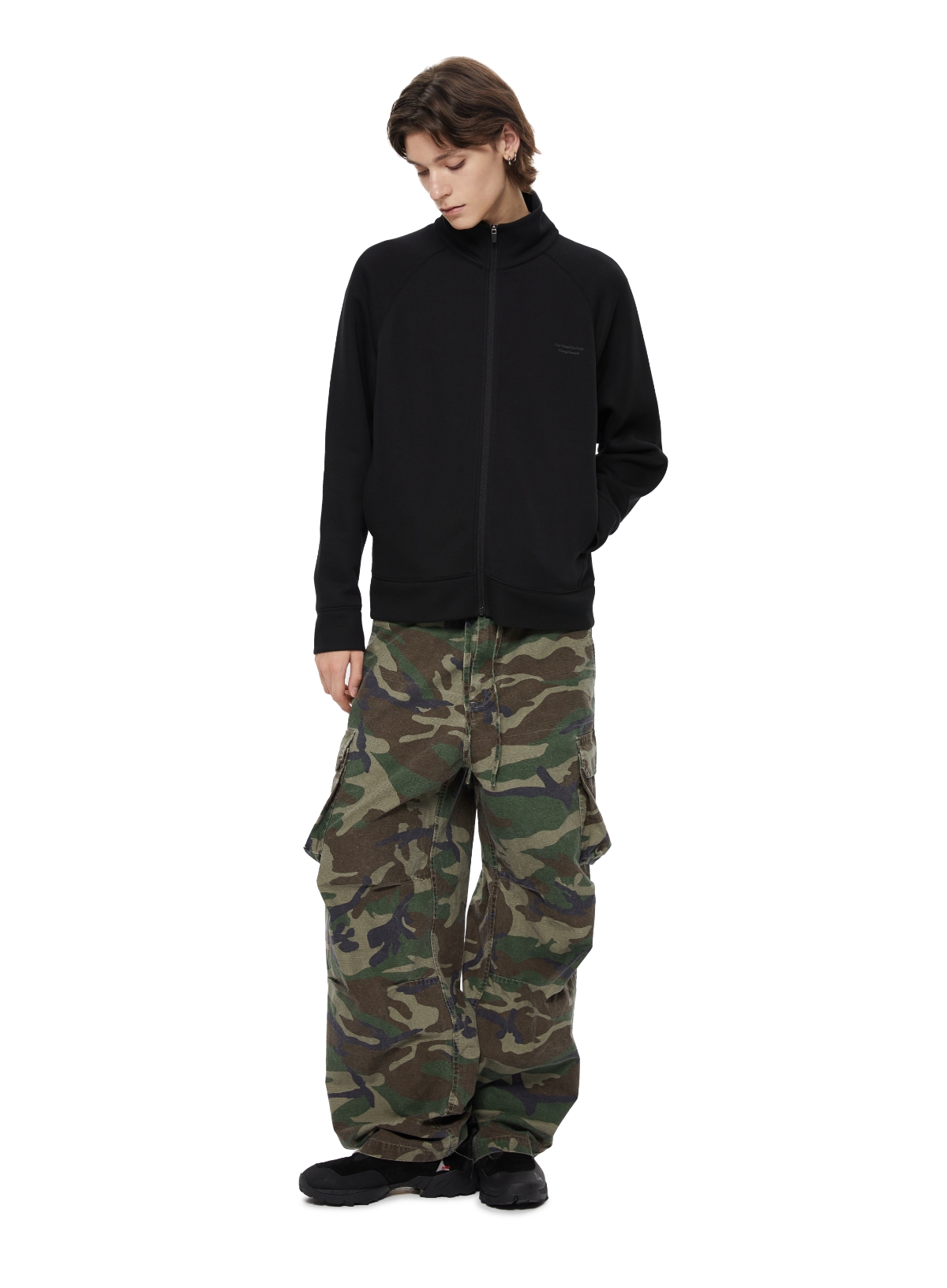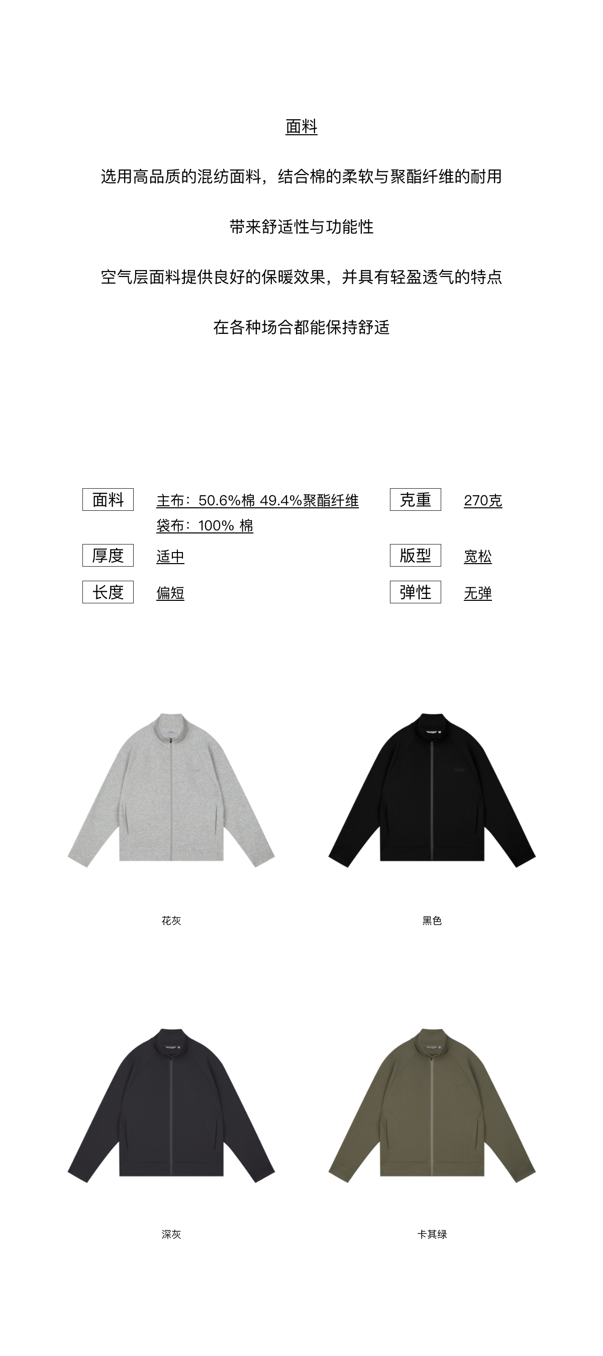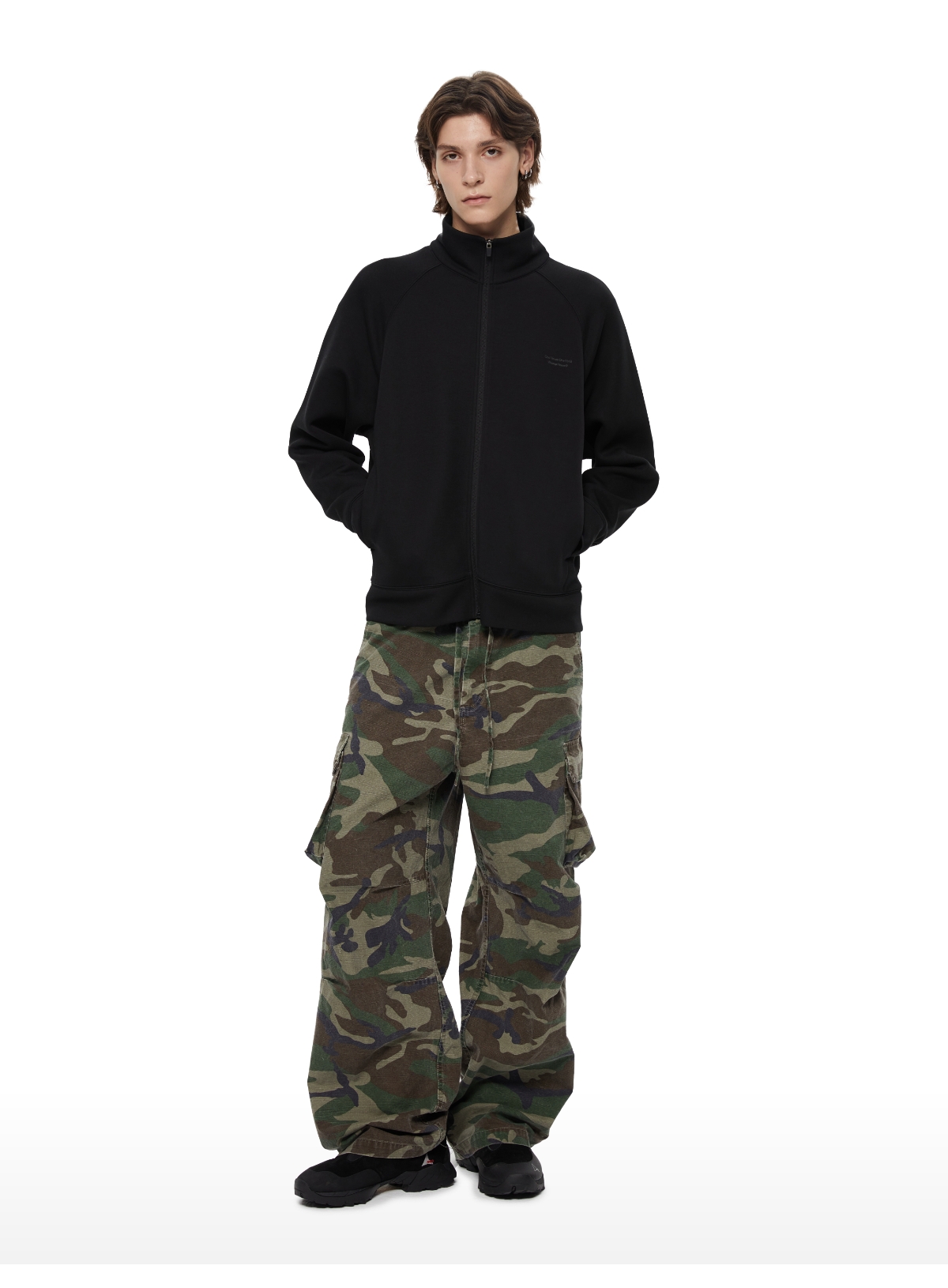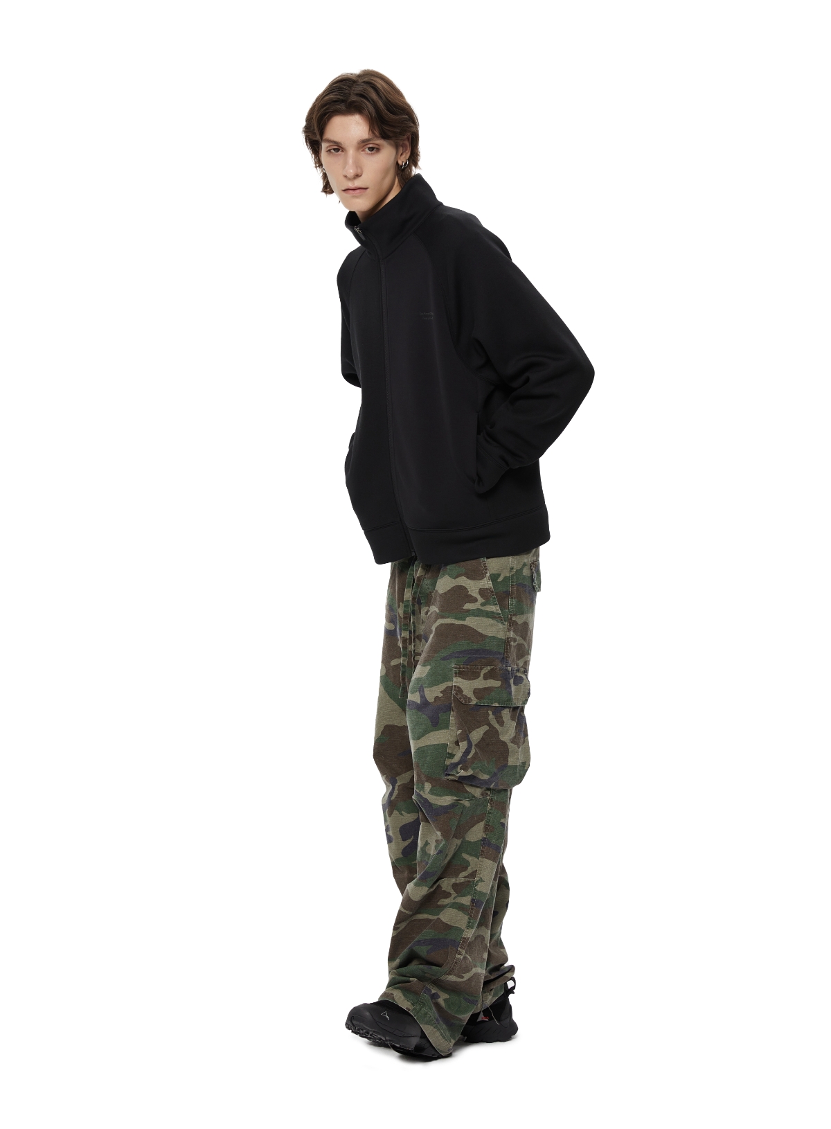WassupHouse 空气棉立领插肩袖拉链卫衣