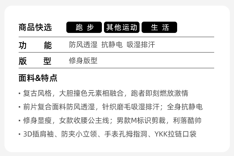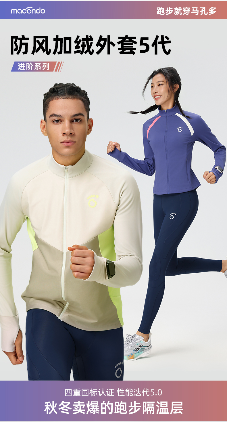 春秋马孔多 男子防风加绒外套5代 防风透湿 吸湿排汗 抗静电 撞色运动风 手表孔 拉链兜 领口防磨
