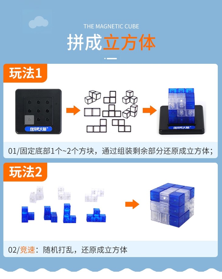 【zui强大脑,鲁班魔方】燃烧吧大脑节目组指定衍生磁性磁力玩具智慧立体索玛方块体儿童中小学生男女孩基础款蓝白黑白炫彩色升级竞技版比赛同款益智力早教启蒙解锁迷宫模型