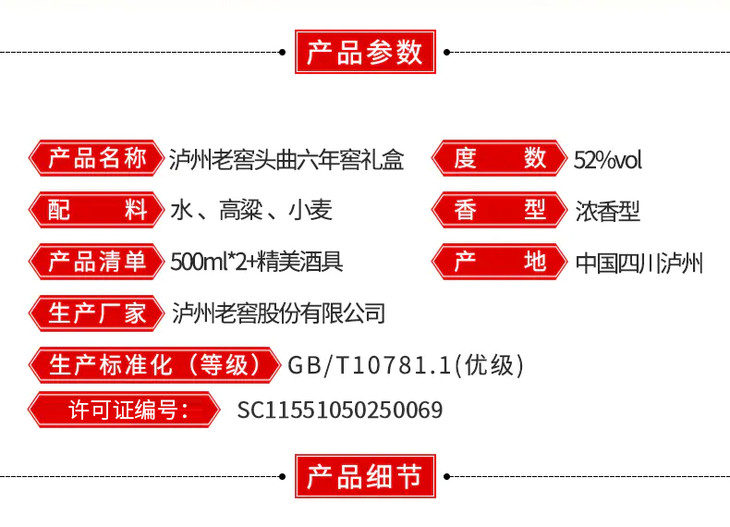 52度 泸州老窖头曲六六顺礼盒 500ml*2 泸州老窖官方旗舰店