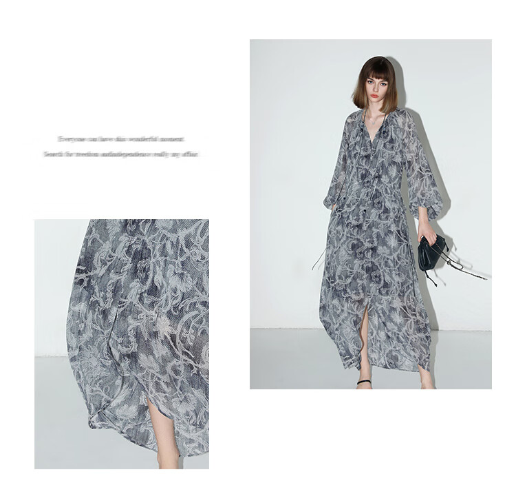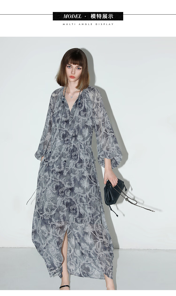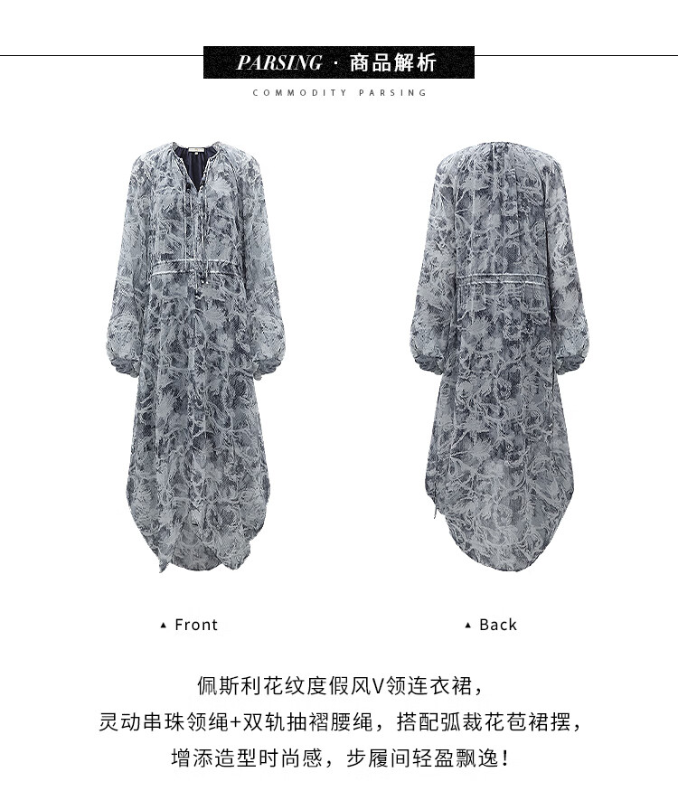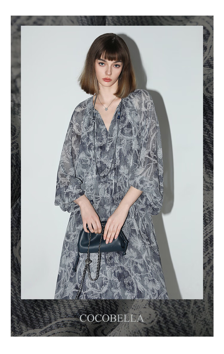 【限时秒杀】COCOBELLA佩斯利印花雪纺连衣裙秋度假风轻盈飘逸长裙FR0041