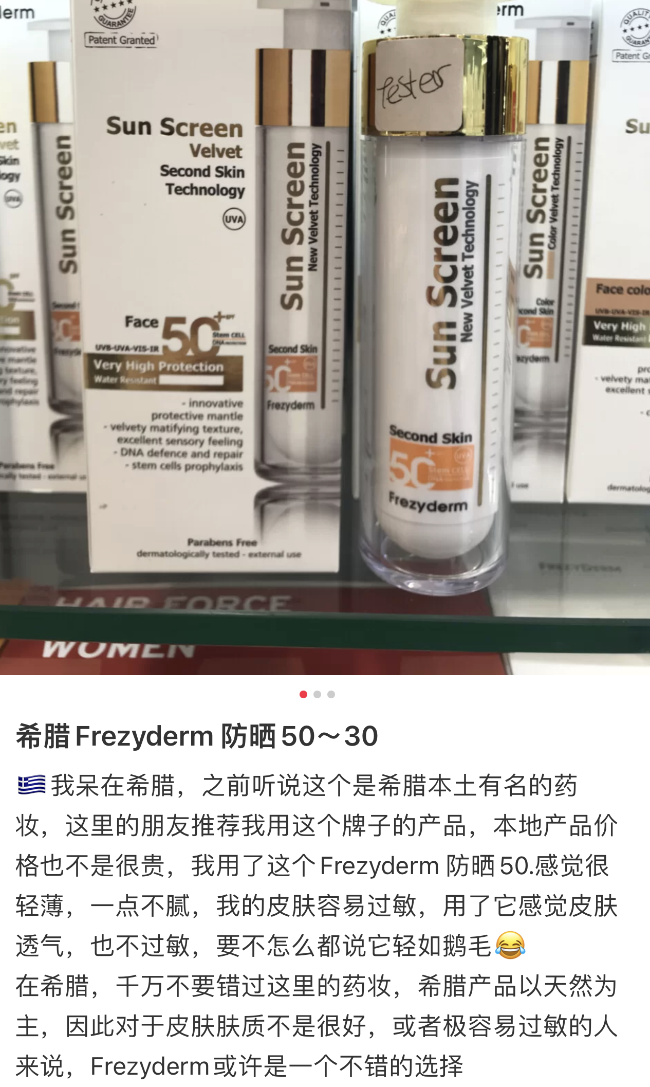 Frezyderm在国内看似小众,但实则是希腊的国民品牌,在欧洲各国都有卖,这款防晒荣获多项国际重量级奖项,有海外旅居史的妹子,很多人都用过它,并且赞不绝口!