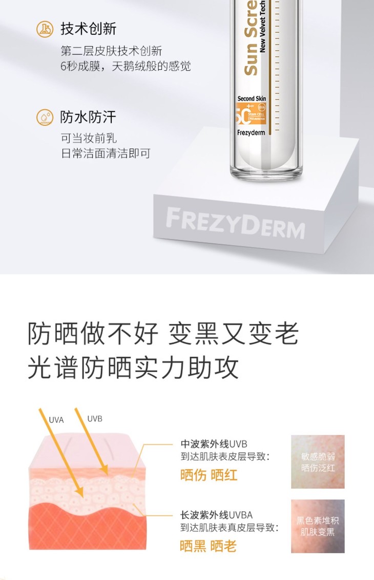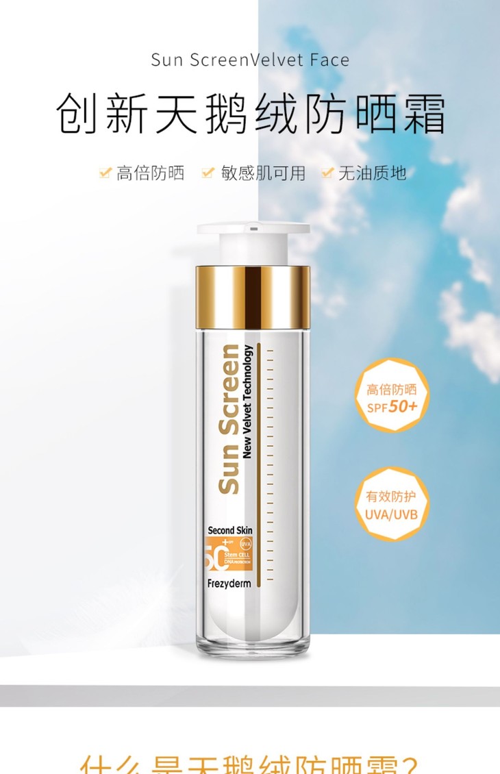 商品名称:【清仓好价】希腊Frezyderm天鹅绒防晒霜50ml SPF30 到22年8月