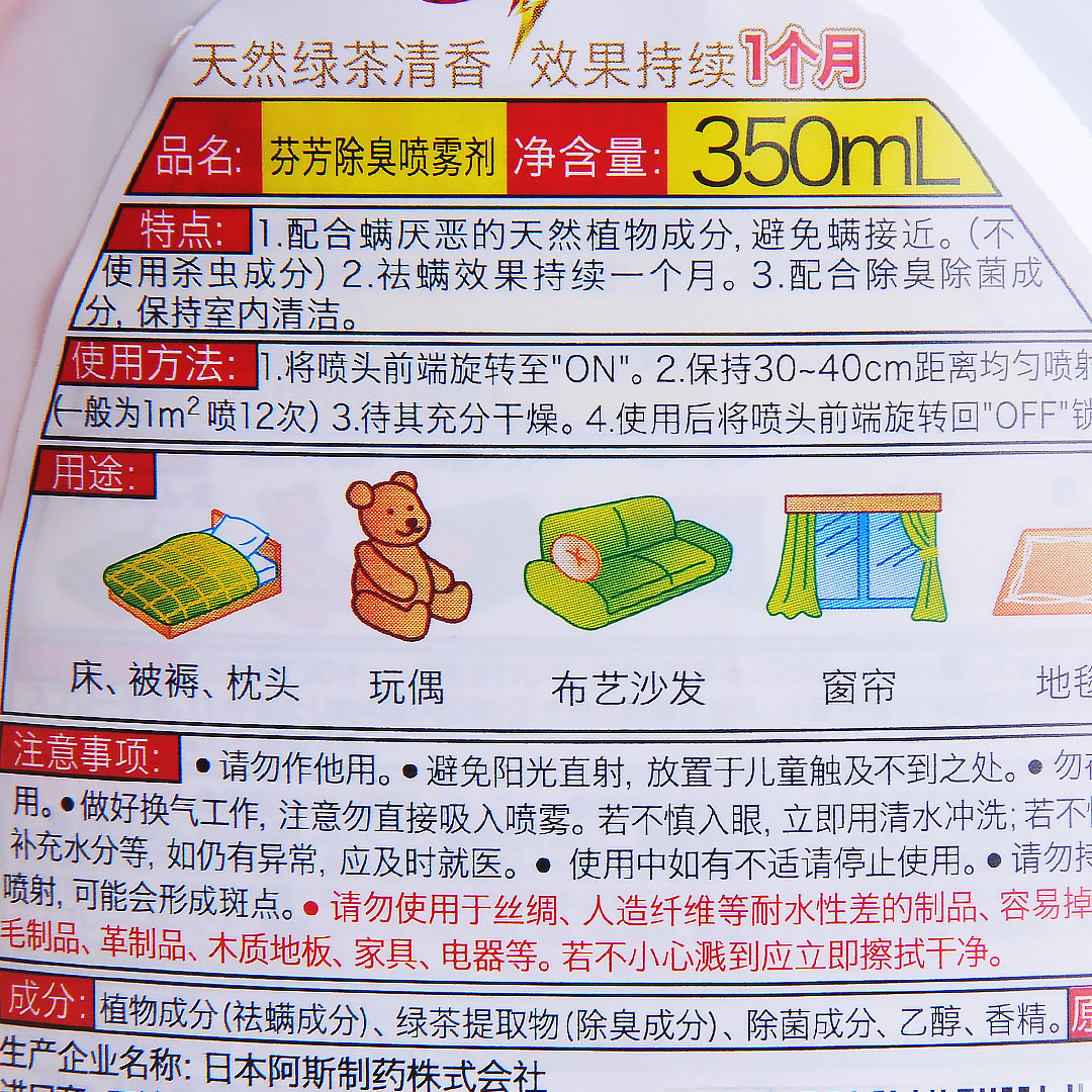 安速祛螨喷雾剂350ml