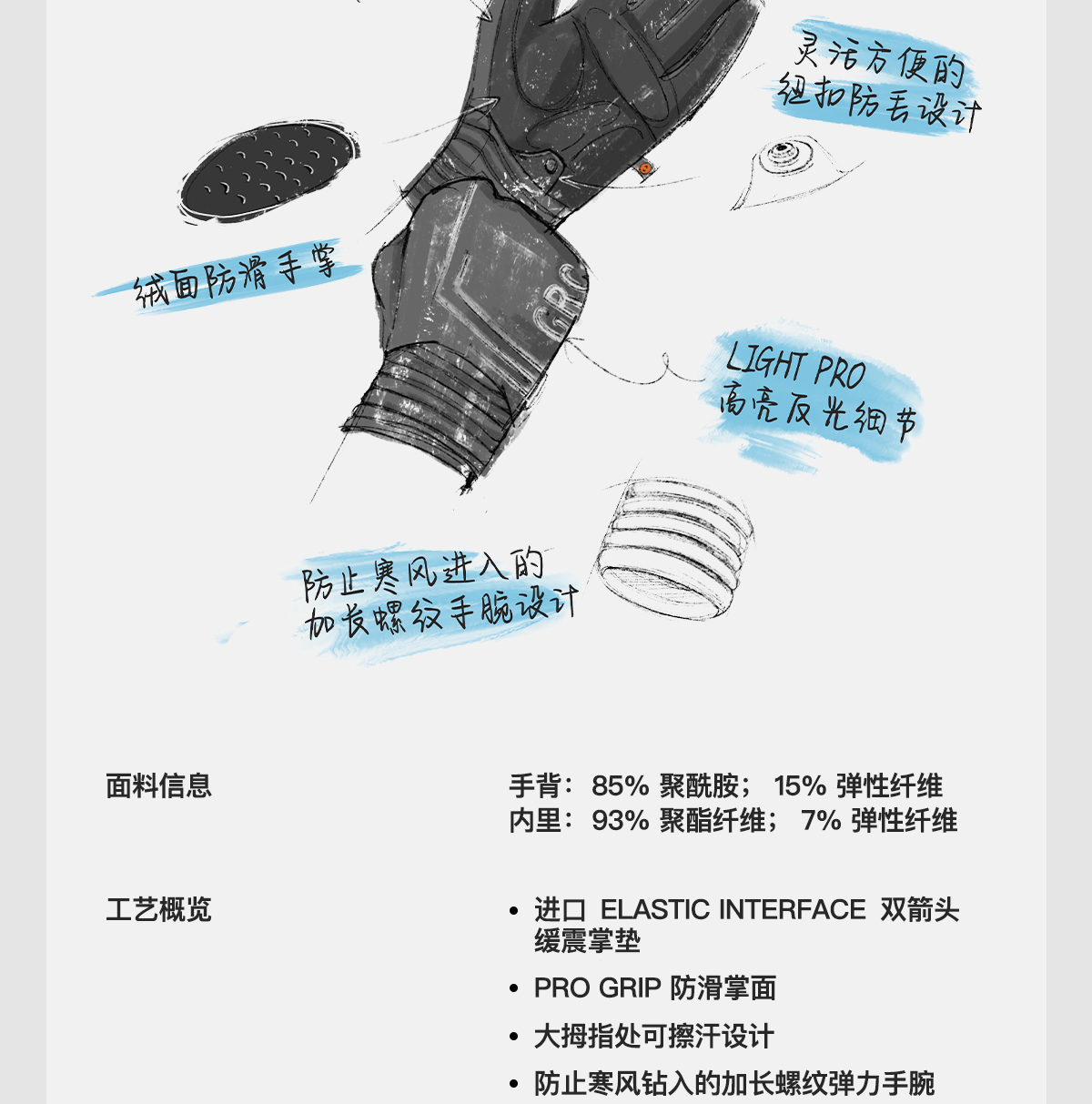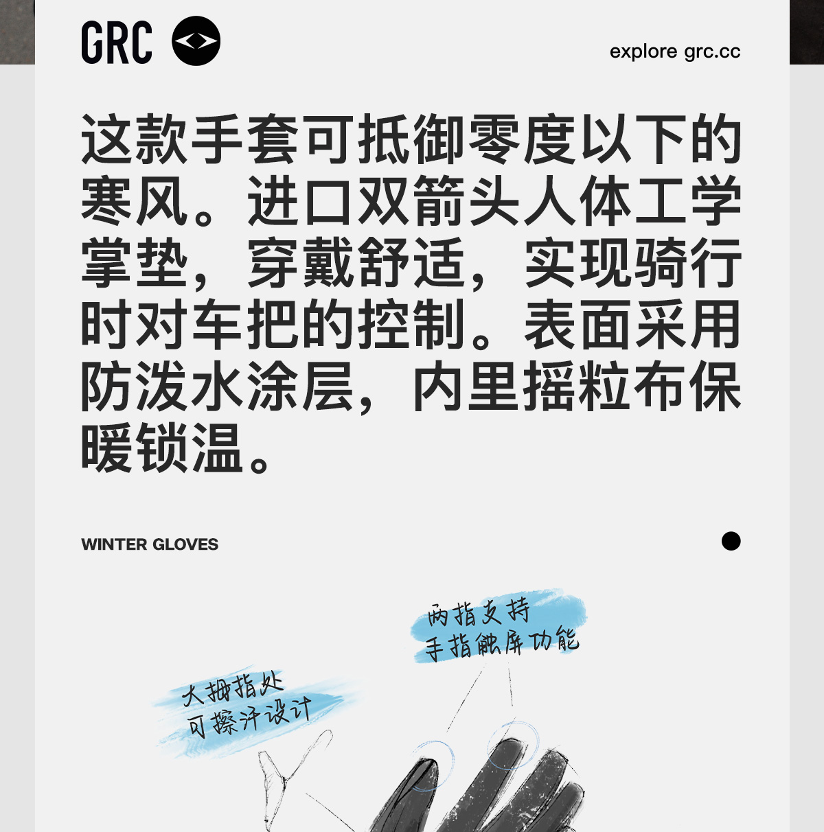 GRC桀骜无尽冬季新款3D人体工学双箭头防风抓绒保暖公路骑行手套