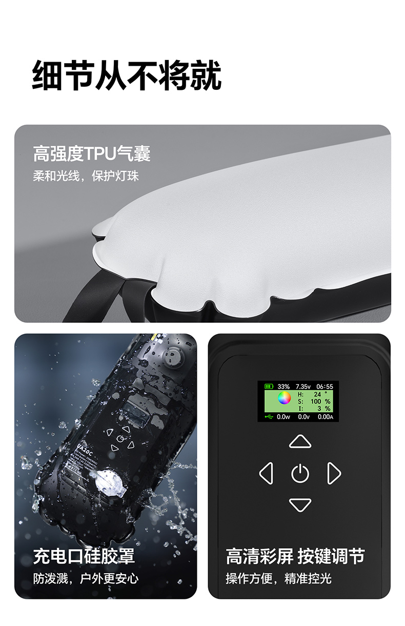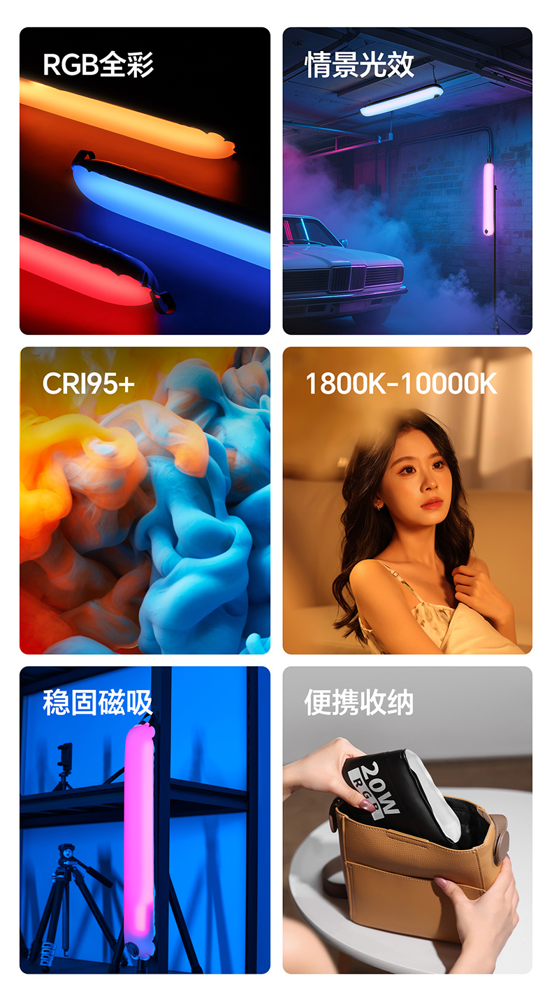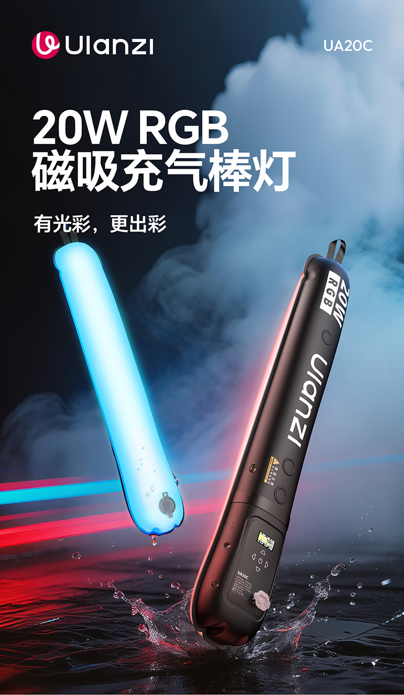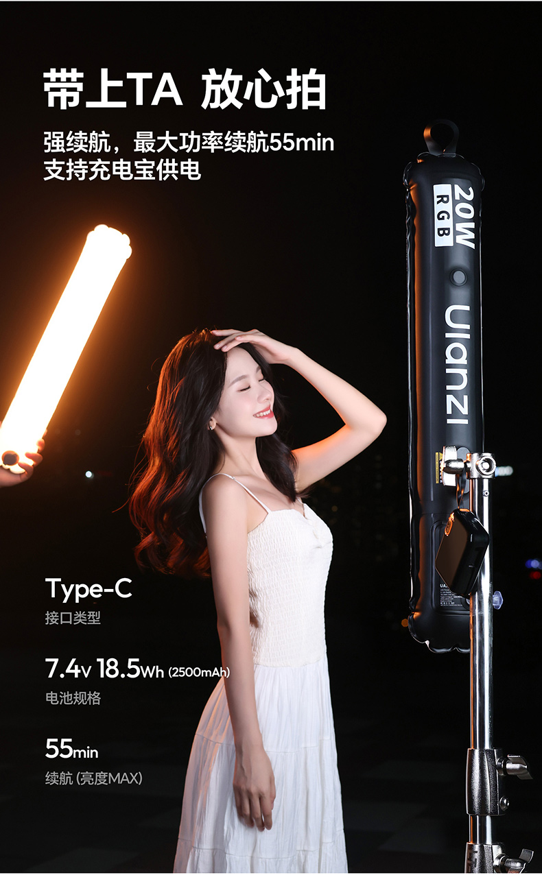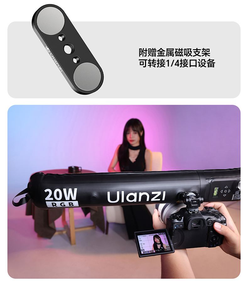 Ulanzi优篮子 UA20C气柱灯20W手持补光灯外拍充气棒灯摄影灯棒户外拍摄专用便携式可折叠打光灯拍照柔光灯
