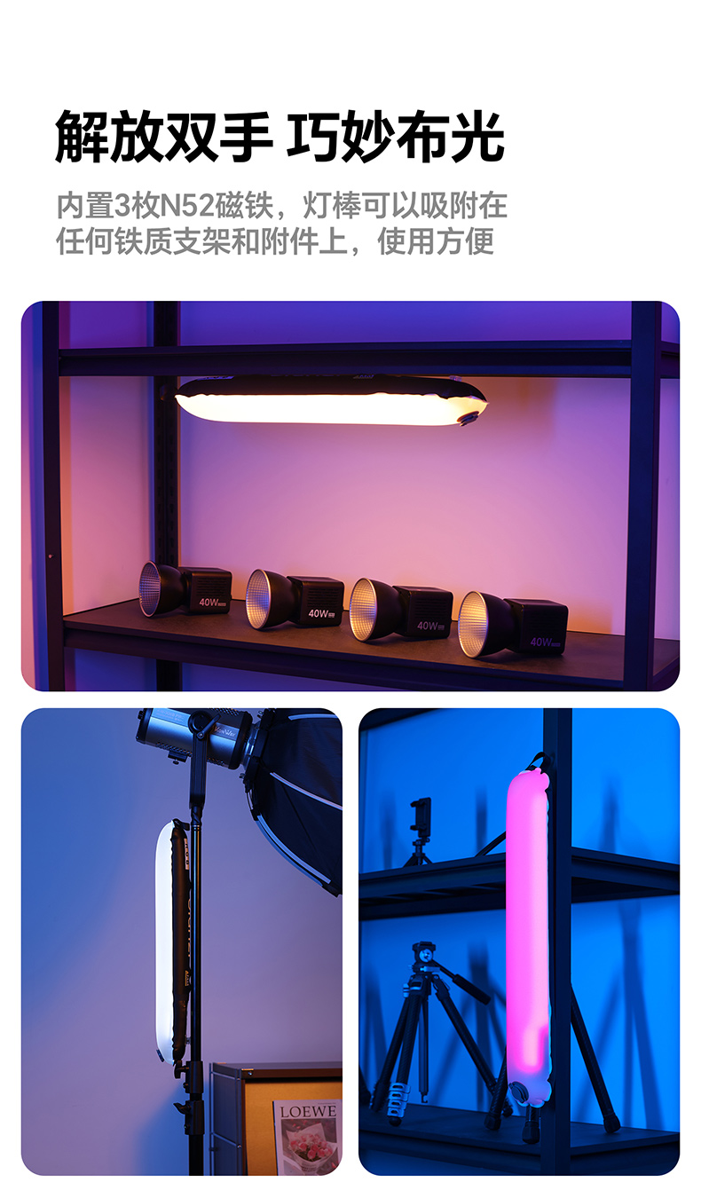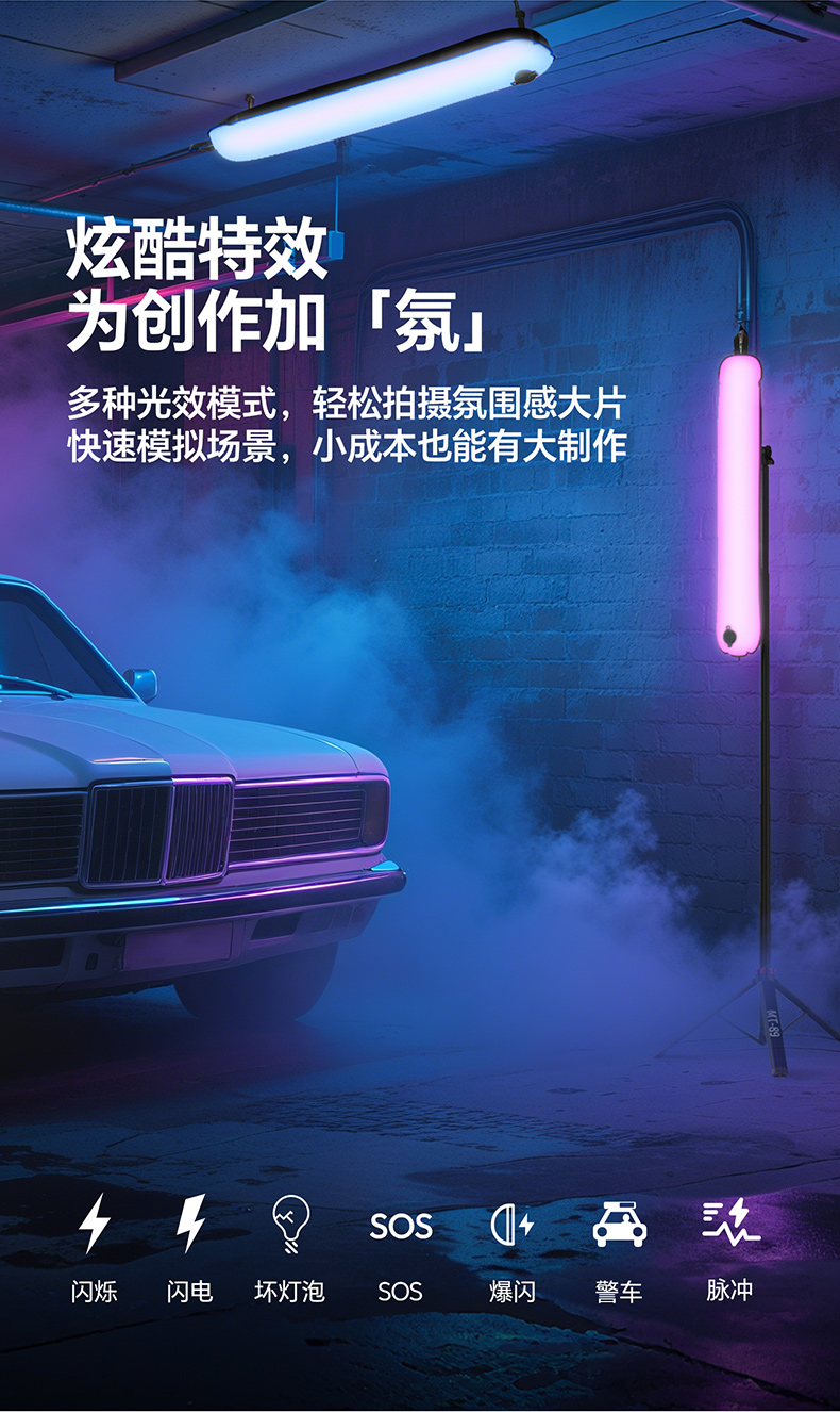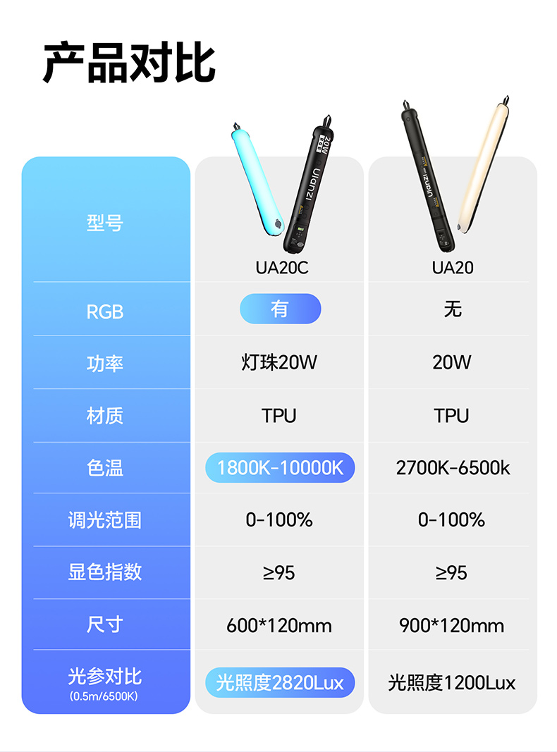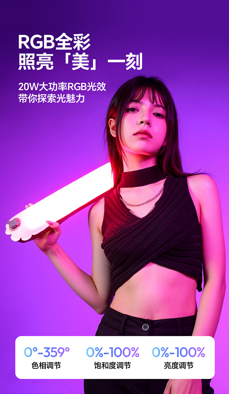 Ulanzi优篮子 UA20C气柱灯20W手持补光灯外拍充气棒灯摄影灯棒户外拍摄专用便携式可折叠打光灯拍照柔光灯