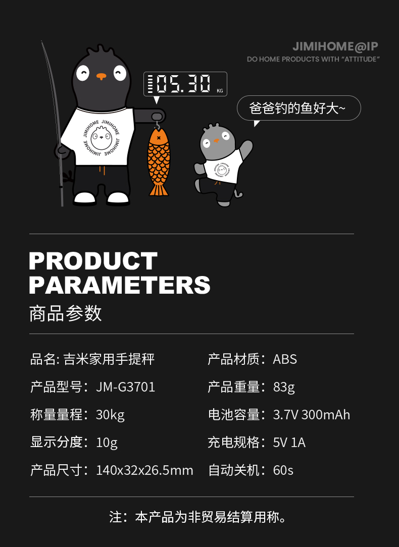 吉米家居手提电子秤便携式高精度家用迷你快递称随身小勾称手拿型JM-G3701
