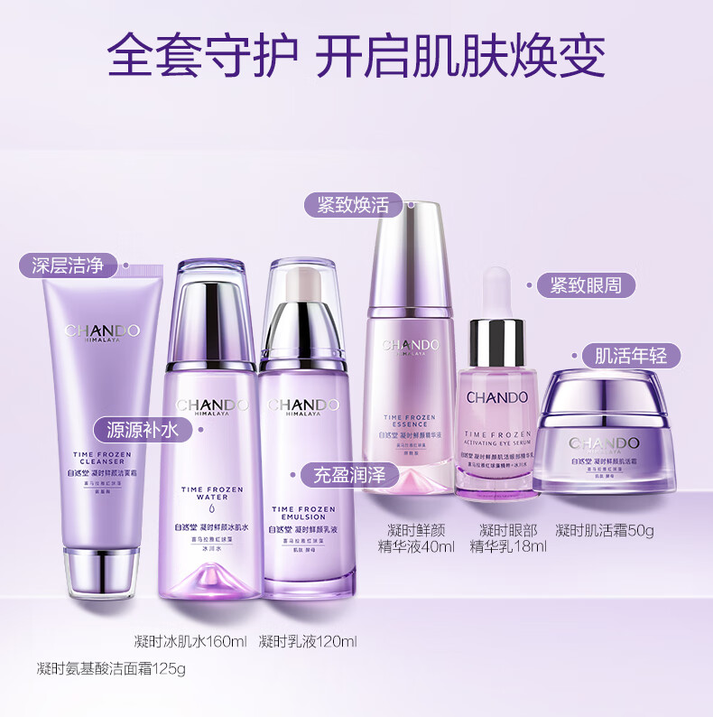 自然堂凝时鲜颜小紫瓶精华抗皱三件套(水乳精)