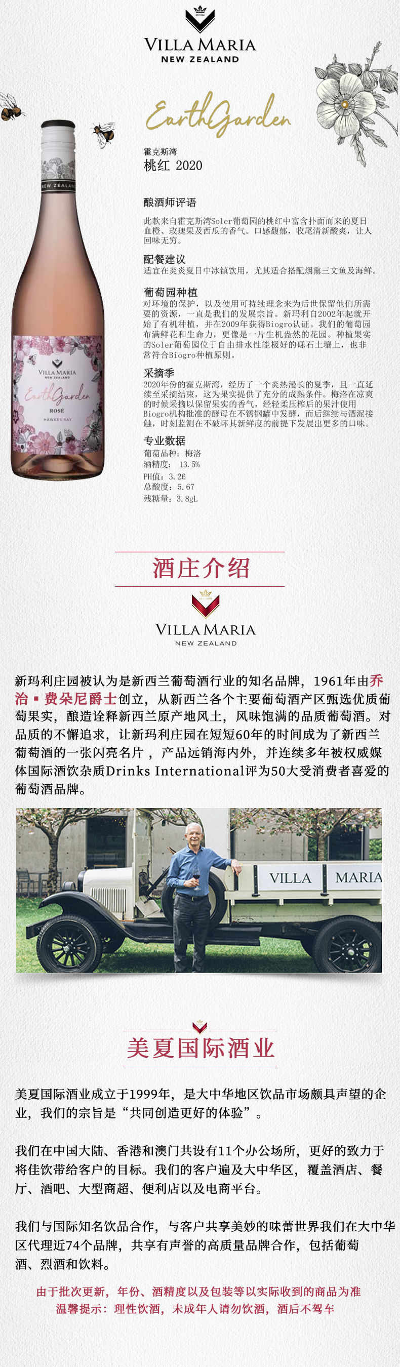 进口新西兰新玛利自然花园桃红葡萄酒750ml