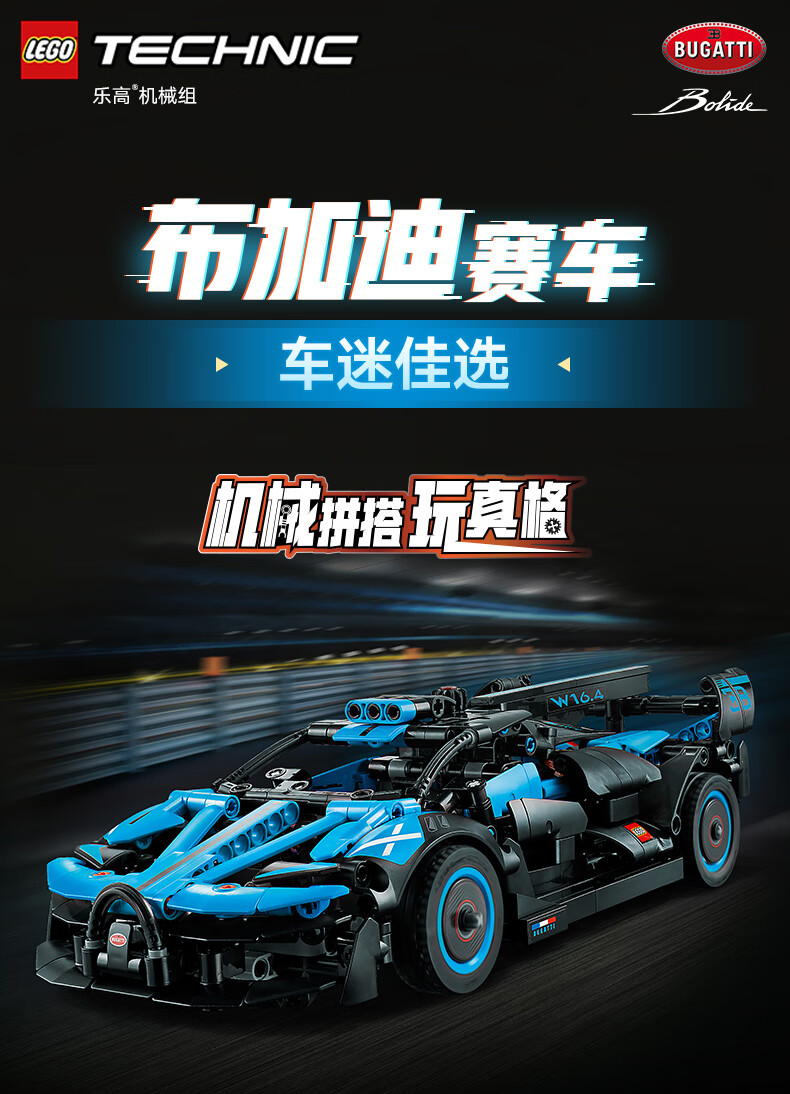 乐高积木L42162乐高机械组系列布加迪 Bugatti Bolide Agile Blue