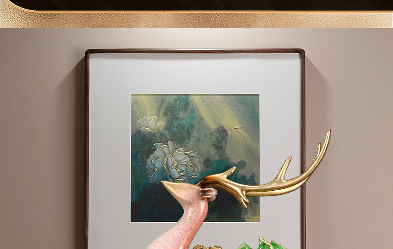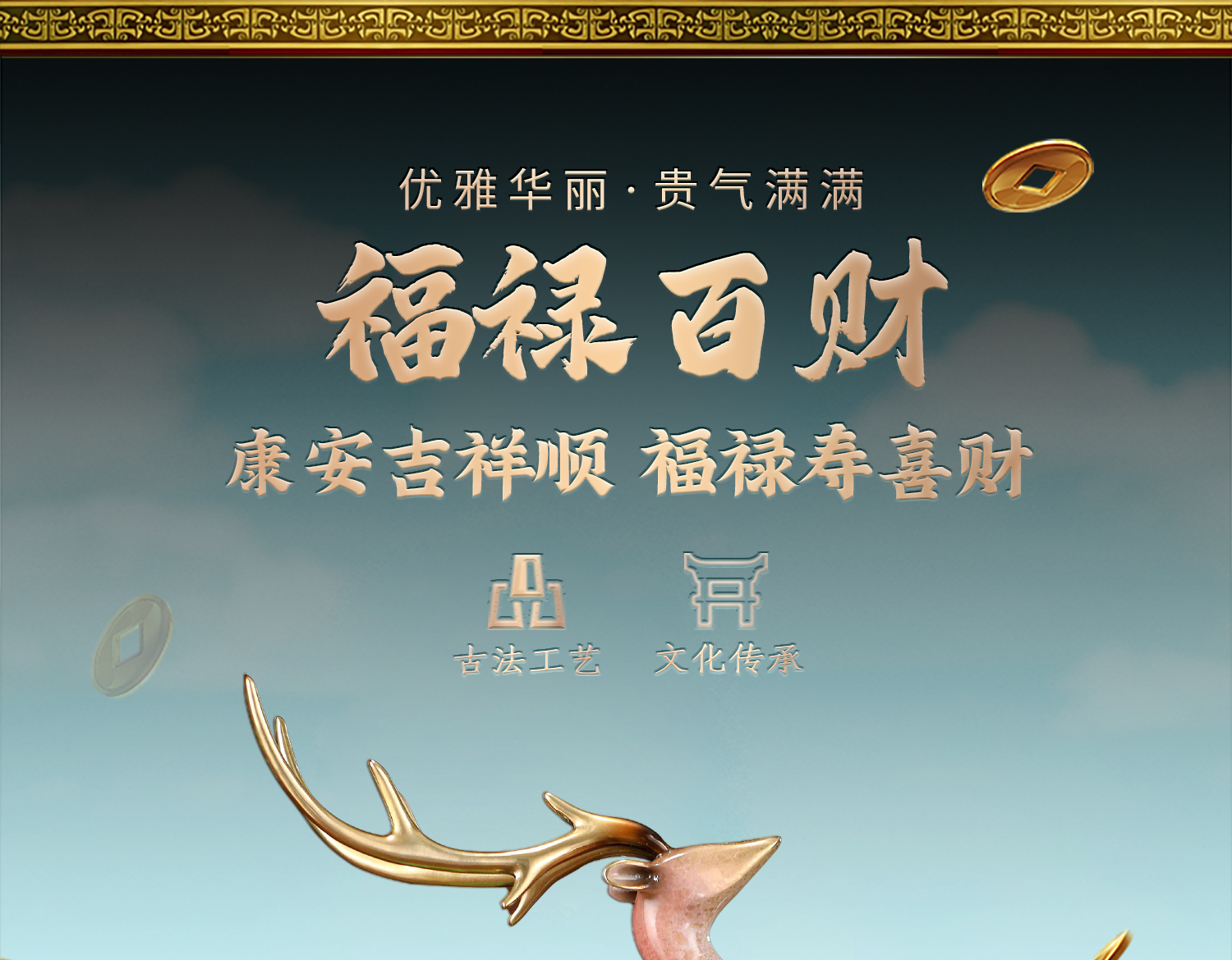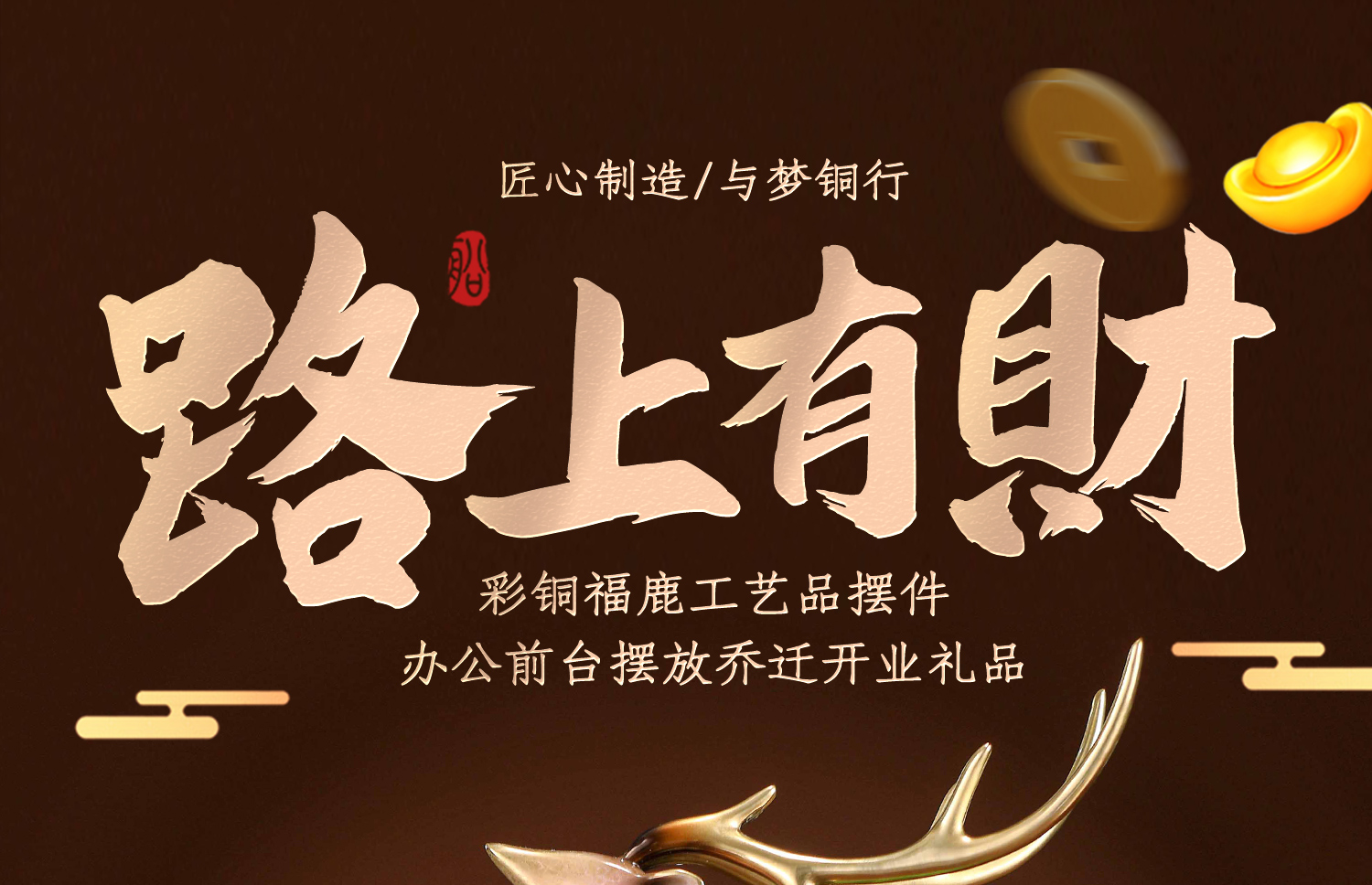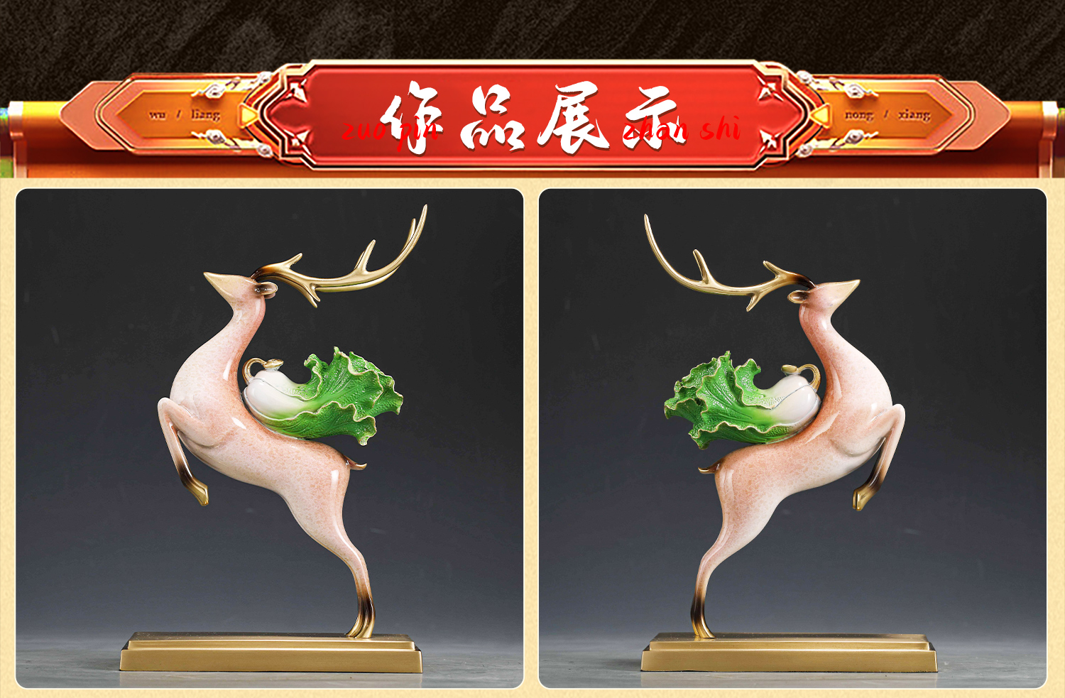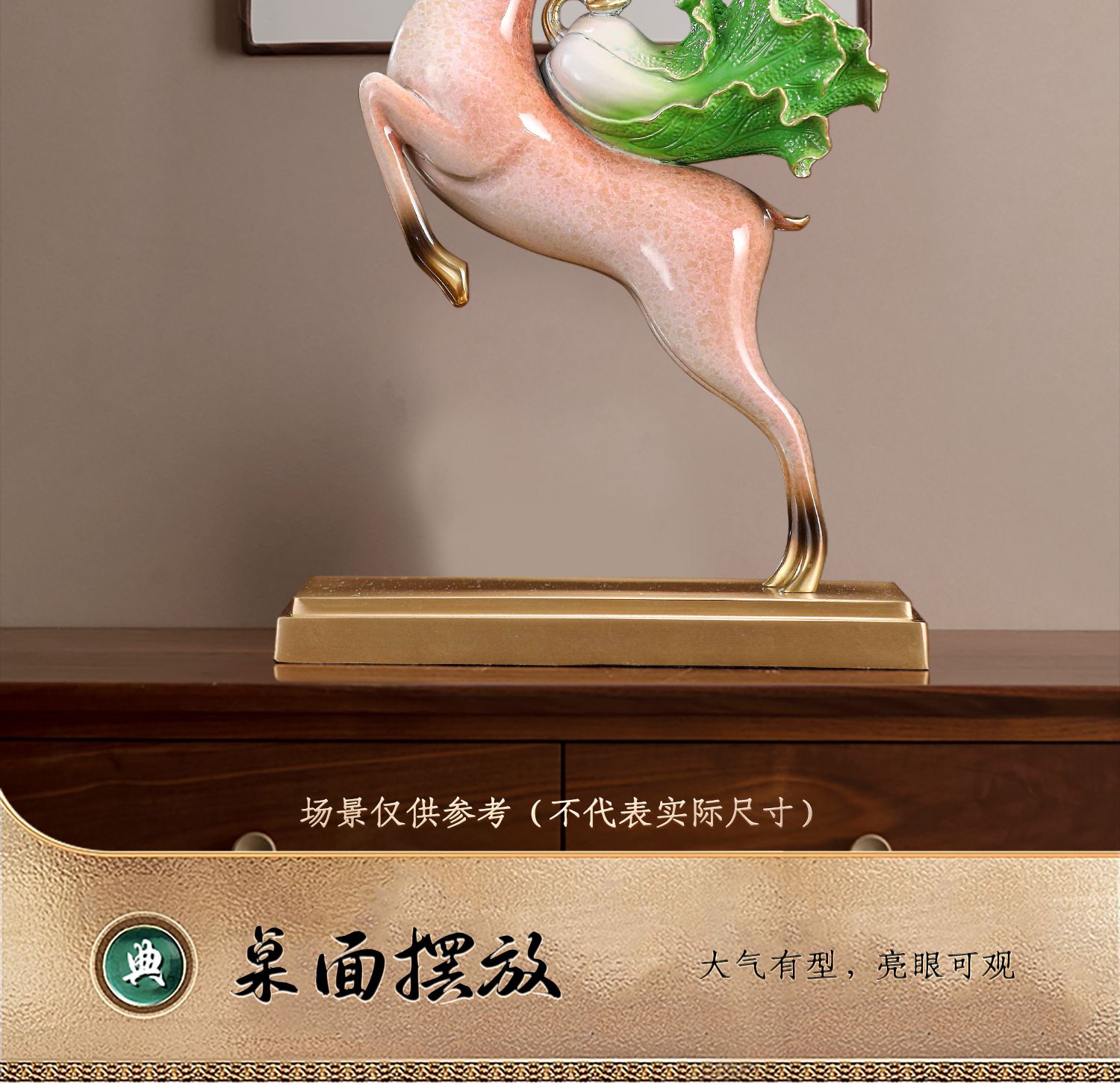 E-YM-FK196 彩铜工艺 一鹿有财摆件 (140*90*290)