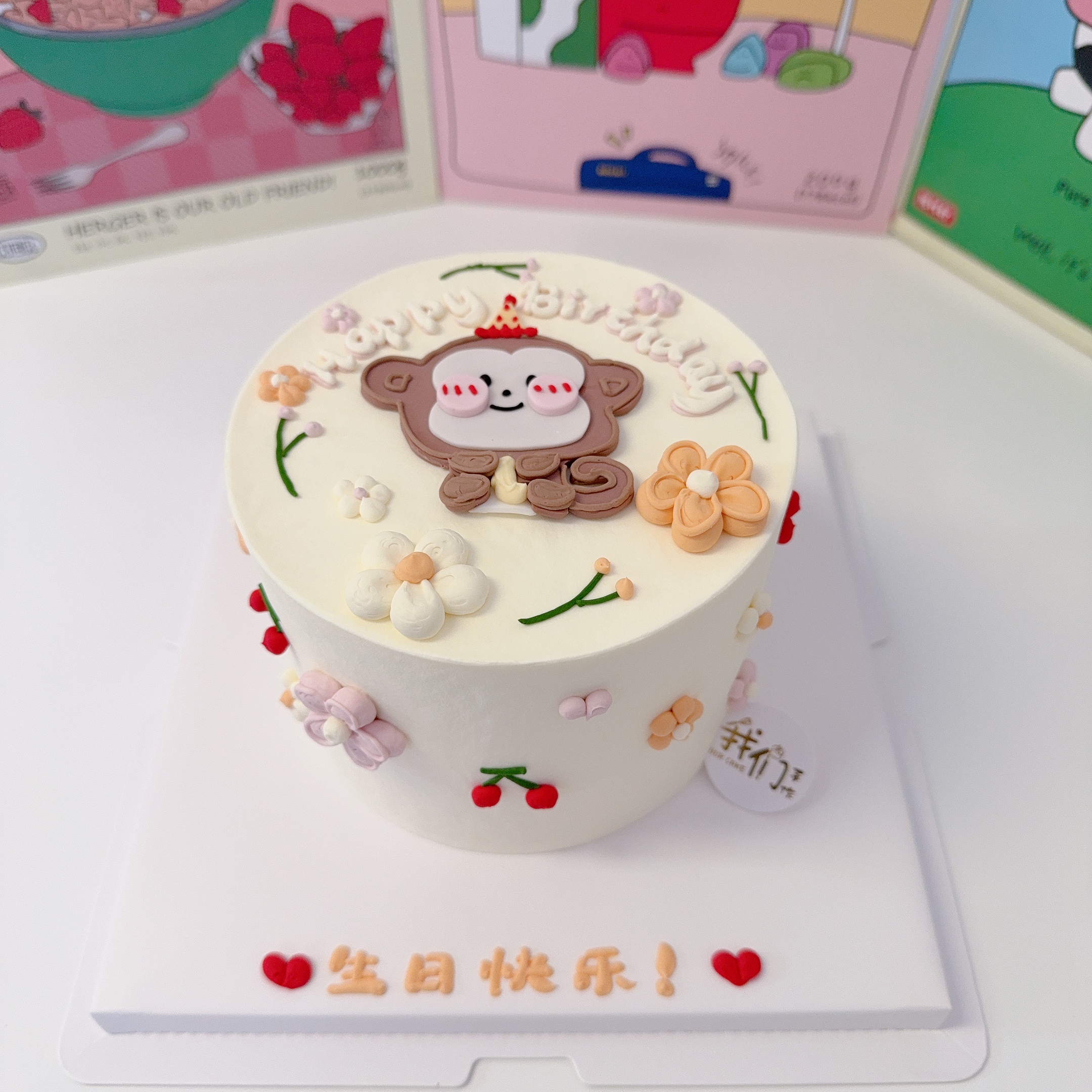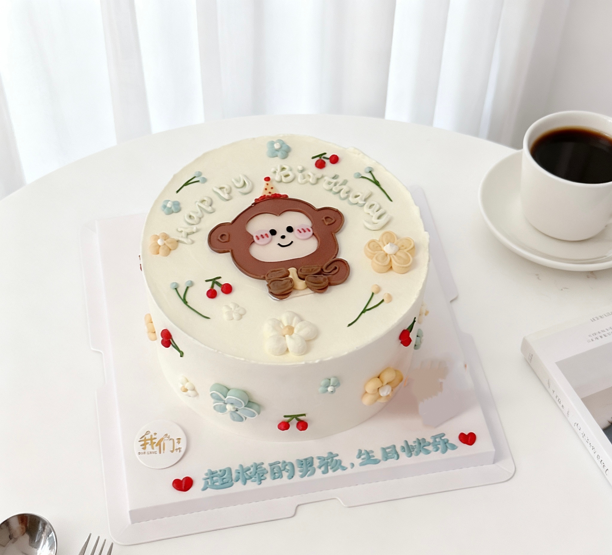 小猴子手绘卡通蛋糕-低糖处理无添加