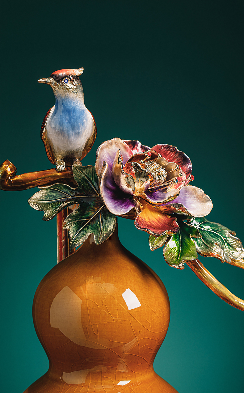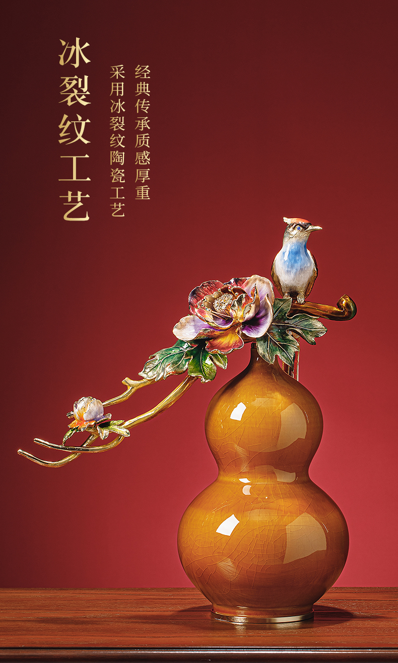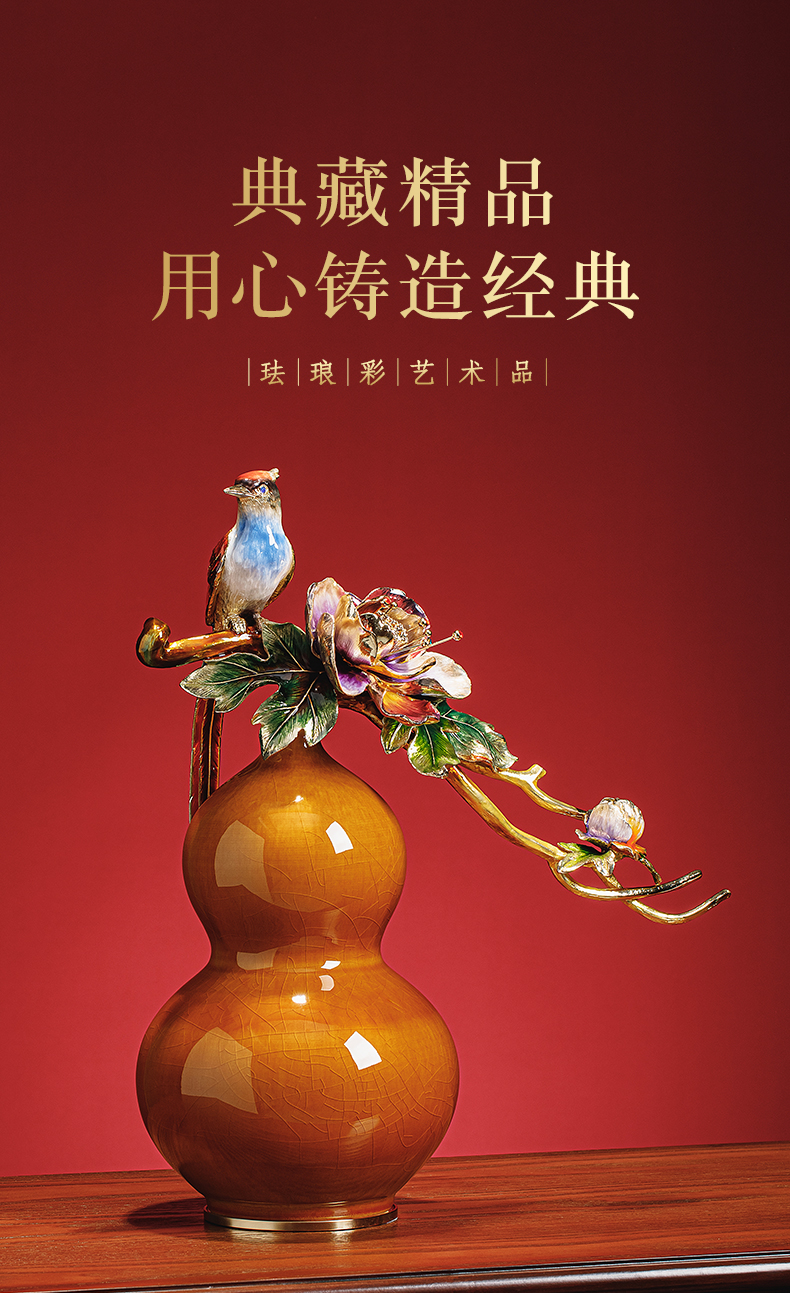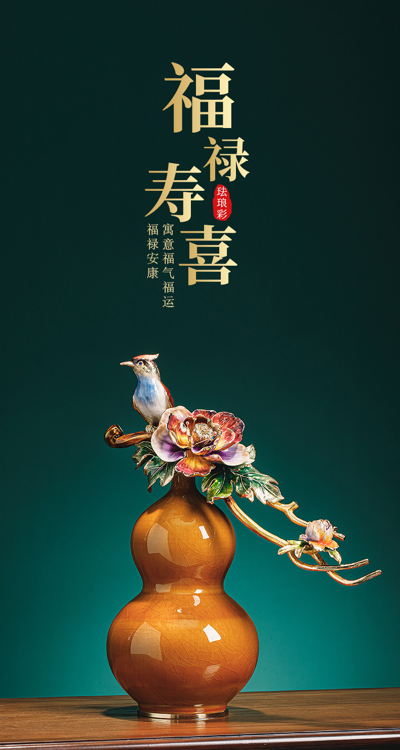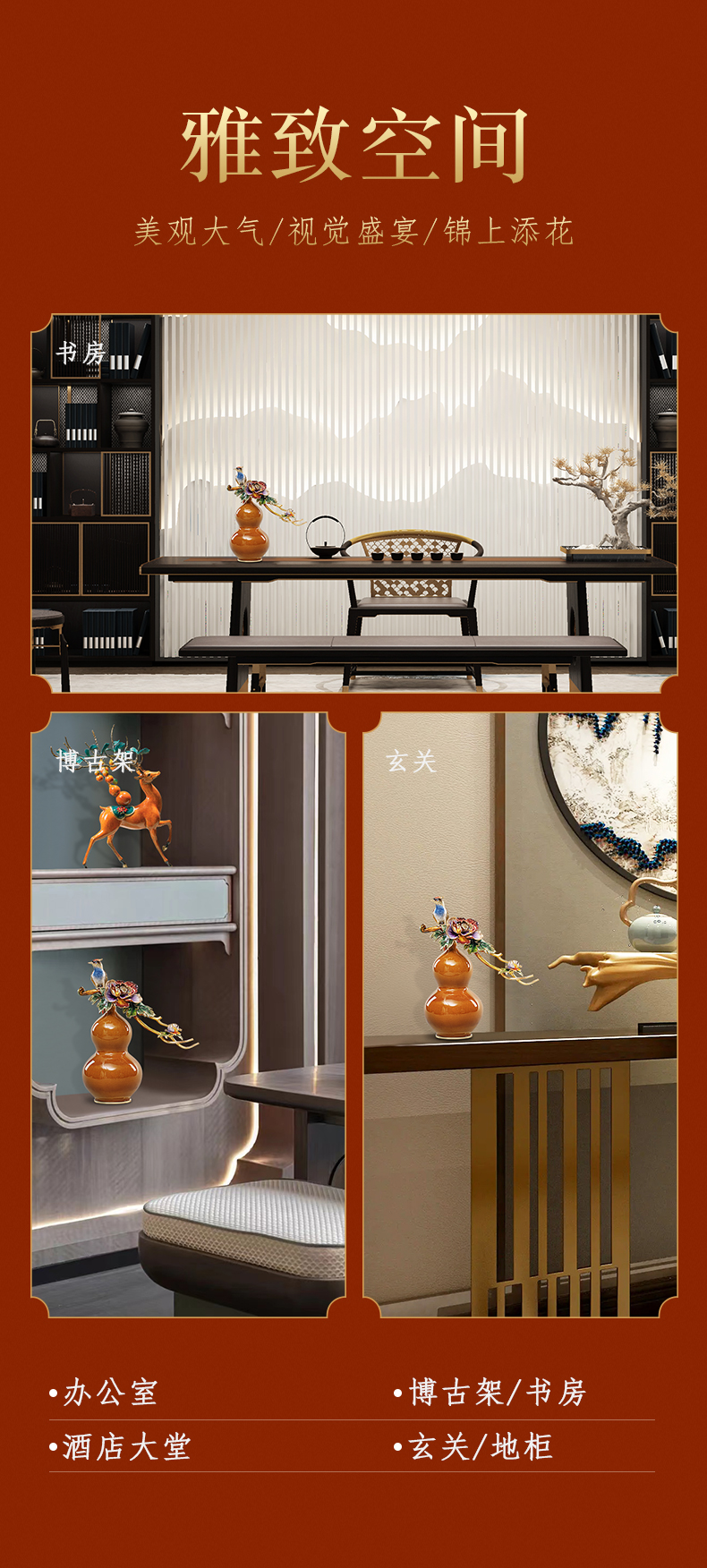 福禄寿喜 陶瓷+珐琅33*17*40珐琅葫芦居家办公室玄关新中式摆件