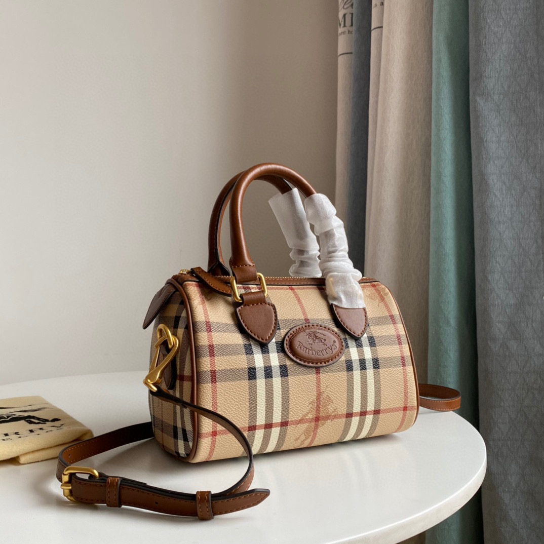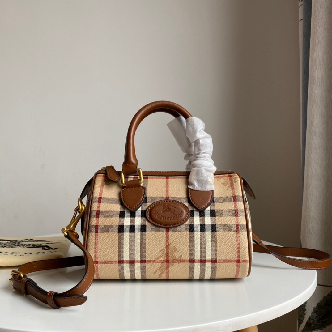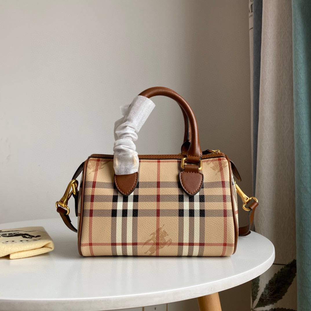 B家中古战马格子波士顿枕头包