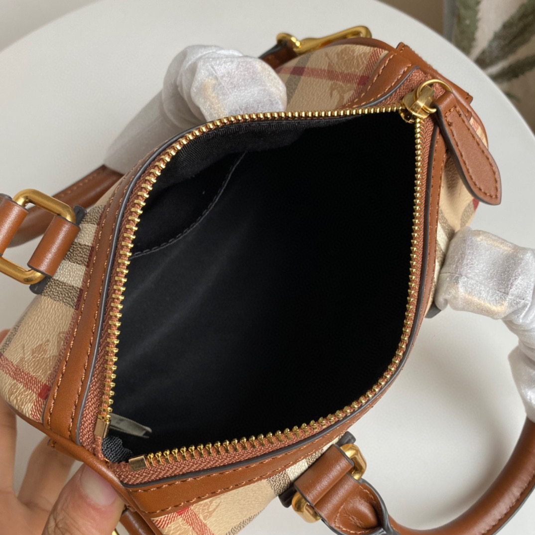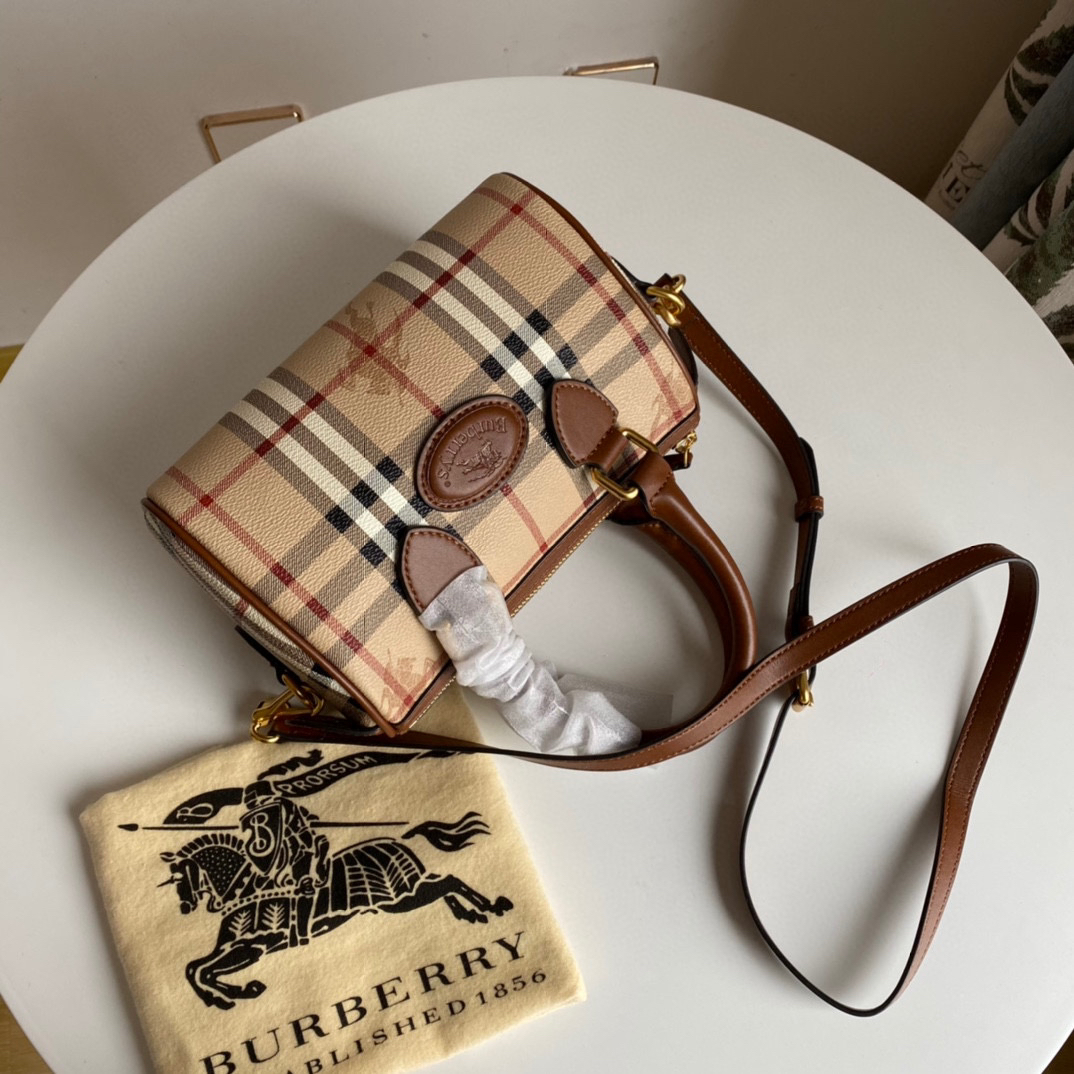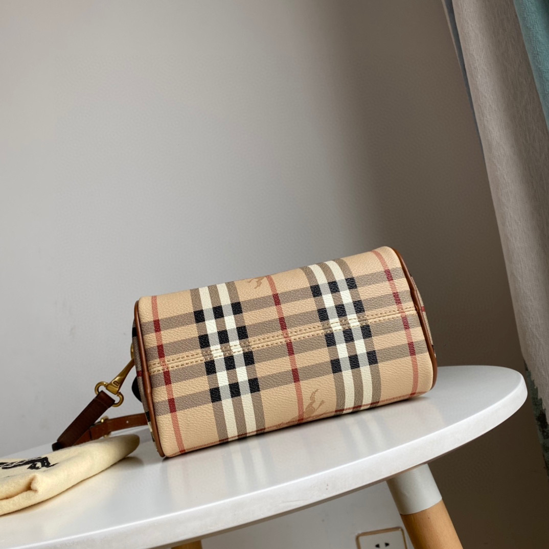 B家中古战马格子波士顿枕头包