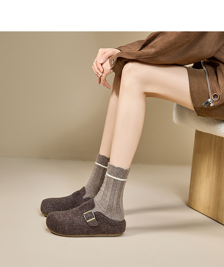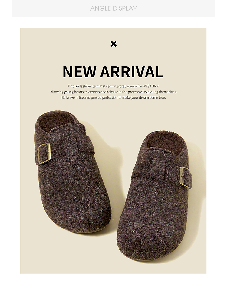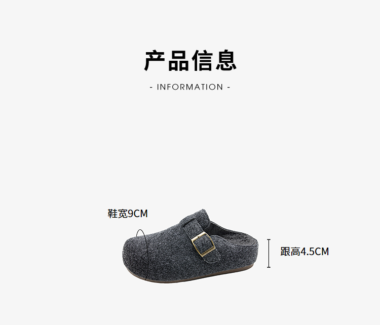 西遇保暖内增高毛毛勃肯鞋女冬季外穿厚底半拖一脚蹬穆勒鞋子V0057364