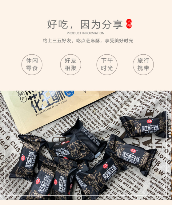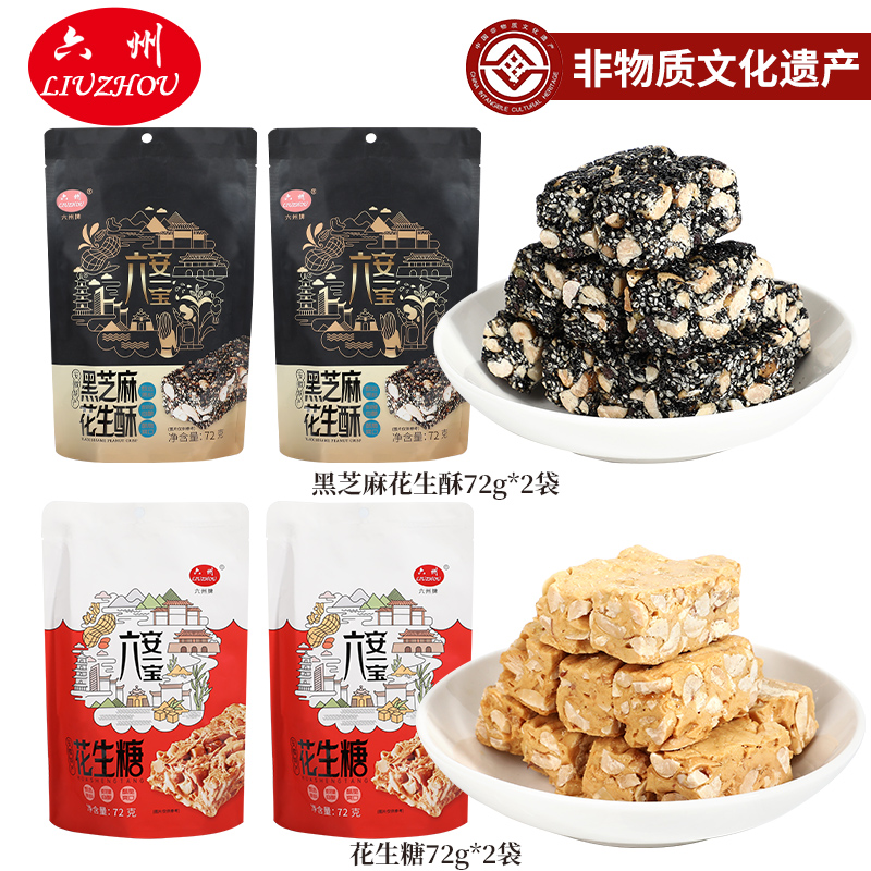 【六州】黑芝麻酥72g*2袋+花生糖72g*2袋
