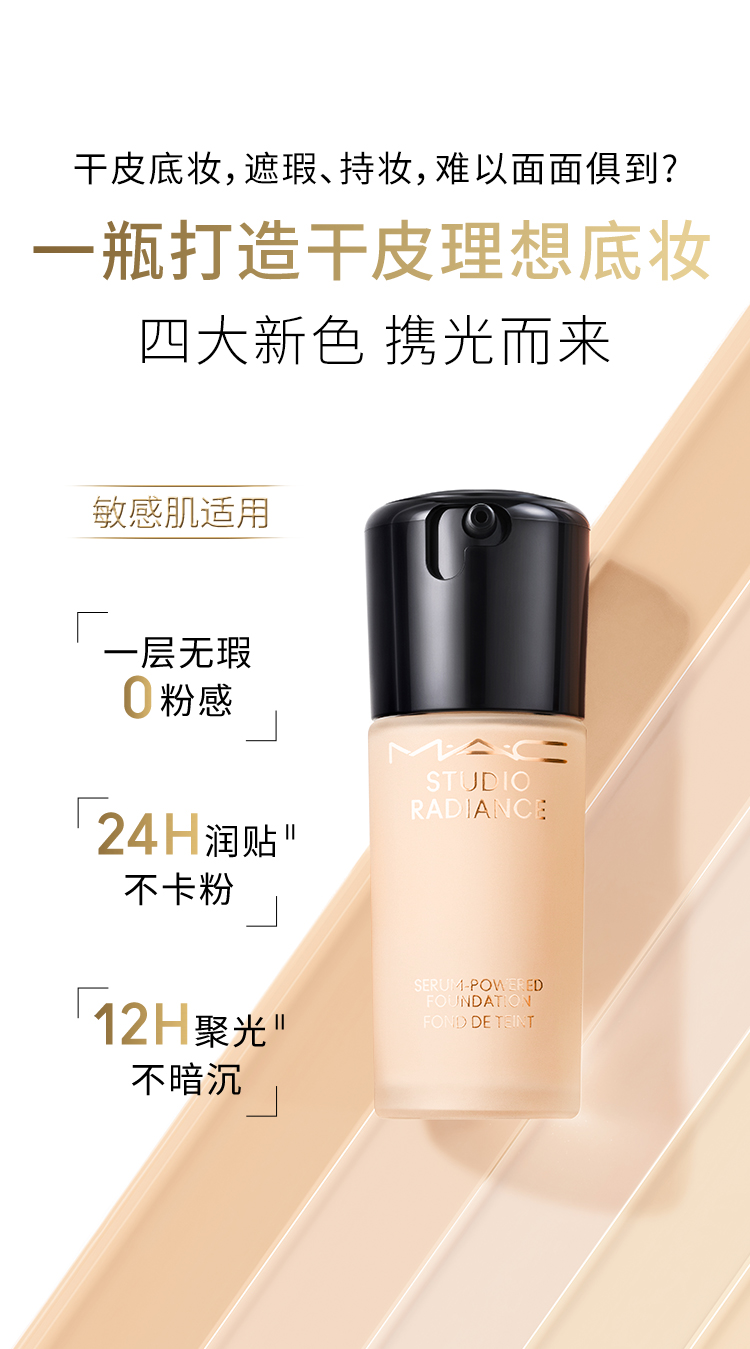 MAC 魅可聚光瓶粉底液遮瑕干皮滋润保湿养肤不脱妆 30ml(干皮必选)