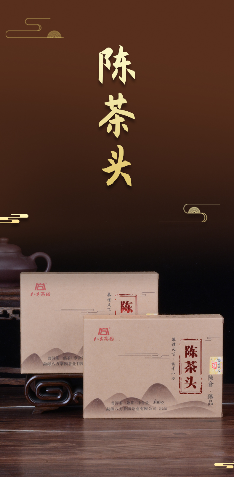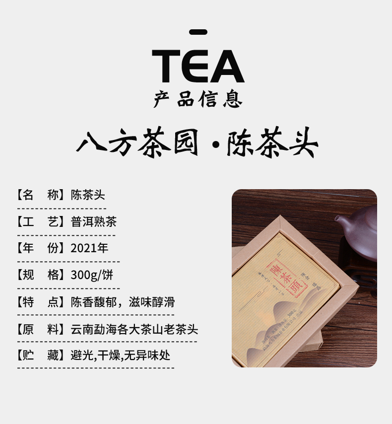 八方茶园 2021年陈茶头熟茶砖300克云南勐海老茶头滋味醇滑普洱