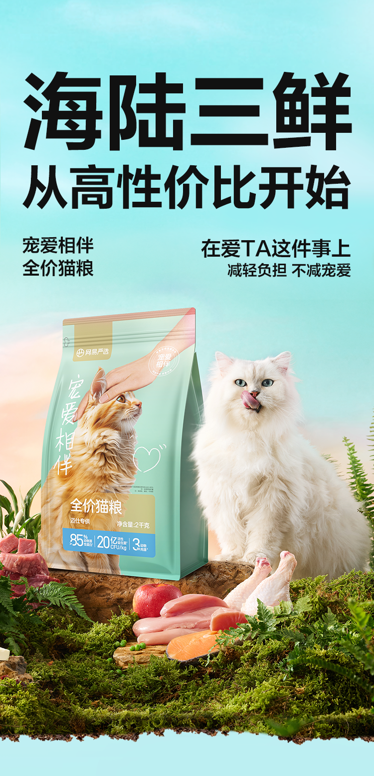 网易严选 海陆三鲜全价猫粮2kg/10kg大包粮 官方正品 营养益生菌护肠胃